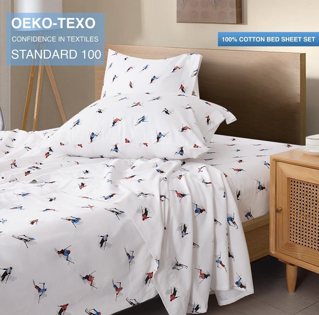 4. Sábanas de franela con bolsillo profundo: la sábana ajustable tiene elástico fuerte y duradero alrededor y el juego de sábanas de franela Twin se ajusta a colchones de hasta 15″.