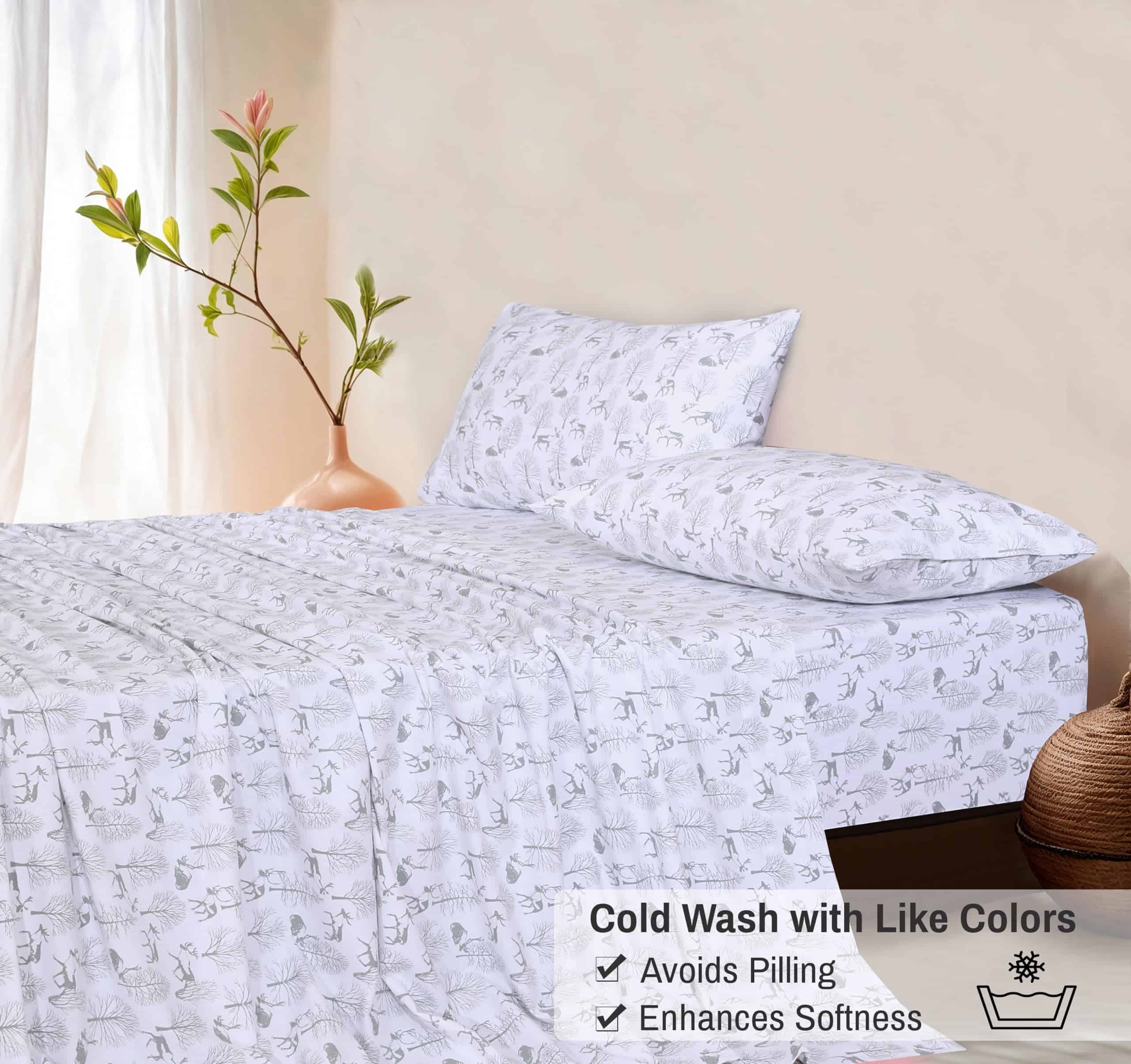 1. Calidad del material: las sábanas de franela 100% orgánicas de Ruvanti están elaboradas con atención meticulosa al detalle, con tela de doble cepillado para una textura extra suave que ofrece una comodidad suprema. Certificadas por GOTS (Global Organic Textile Standard), garantizando que cumplen con los más altos estándares de producción orgánica. 2. Suavidad y comodidad incomparables: las sábanas de franela 100% orgánicas de Ruvanti tienen una textura extra suave gracias a su acabado de doble cepillado, ofreciendo una calidez y acogida sin igual. Su diseño transpirable promueve una excelente circulación de aire, asegurando un sueño placentero al mantener el equilibrio perfecto entre calor y ventilación. 3. Duraderas y de larga duración: las sábanas de franela 100% orgánicas de Ruvanti están diseñadas para ser duraderas, con resistencia a la formación de bolitas, decoloración y encogimiento, asegurando que mantengan su calidad y apariencia con el paso del tiempo. Disponibles en una amplia gama de estampados y colores sólidos, estas sábanas son tanto elegantes como prácticas. 4. ¿Qué incluye?: Cada juego de sábanas incluye componentes de tamaño generoso, proporcionando un ajuste perfecto para tu cama mientras realza la estética de tu dormitorio. El juego de sábanas de franela King de Ruvanti 100% orgánico incluye una sábana plana (108″x102″), una sábana ajustable (78″x80″ con un bolsillo profundo de 16″), y dos fundas de almohada (20″x40″). 5. Sostenibilidad: Hechas de algodón cultivado de forma orgánica, nuestro juego de sábanas apoya prácticas sostenibles al conservar agua y promover la salud del suelo. Disfruta de un sueño reparador mientras impactas positivamente en el planeta. Estas sábanas son fáciles de mantener, conservando su suavidad y calidad con un simple lavado a máquina en agua fría y secado en calor bajo.