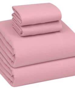 Juego de sábanas de franela orgánico Ruvanti tamaño Queen – 100% algodón – Bolsillo profundo de 16 pulgadas – Transpirable durante todas las estaciones, extra suave, cálido y acogedor – 4 piezas – Rosa Nupcial