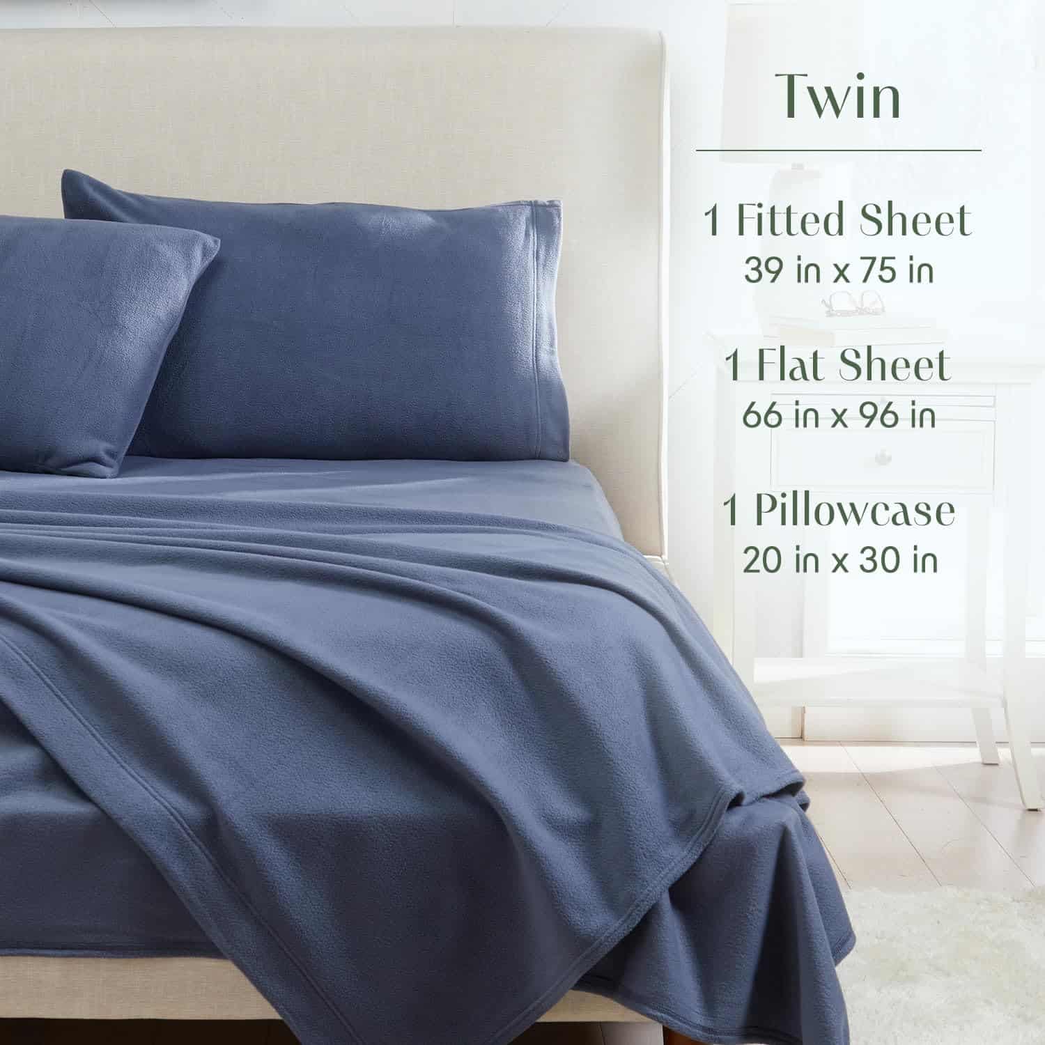 2. QUÉ INCLUYE: Twin 1 sábana ajustable 39″ x 75″ | 1 sábana plana 66″ x 96″ | 1 funda de almohada 20″ x 30″.