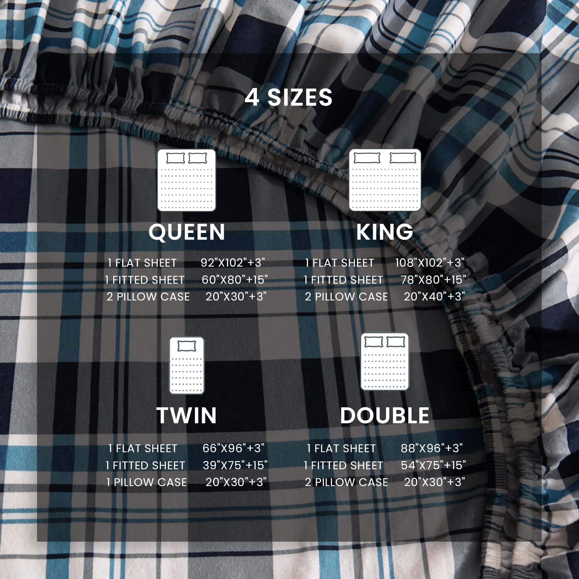 3. Material de Calidad: Las sábanas de franela están hechas de tejido de franela de algodón 100% pesado de 160 GSM y cepillado 2 veces. Sentirás como si te estuvieran abrazando 1,000 ovejas.
