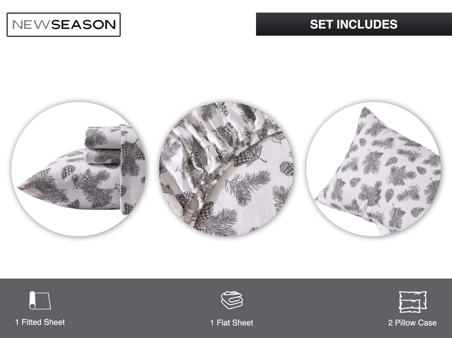 Transforma tu dormitorio en un refugio acogedor con nuestras Sábanas de Franela de nueva temporada. Estas sábanas de cama de algodón 100% suavemente cepillado tienen un estampado elegante de Pino Conos que añadirá un toque de estilo a tu habitación. Gracias a su textura suavemente cepillada, este juego de sábanas no solo proporciona un toque aterciopelado contra tu piel, sino que también agrega una capa extra de calor, garantizando un sueño reparador como ningún otro!