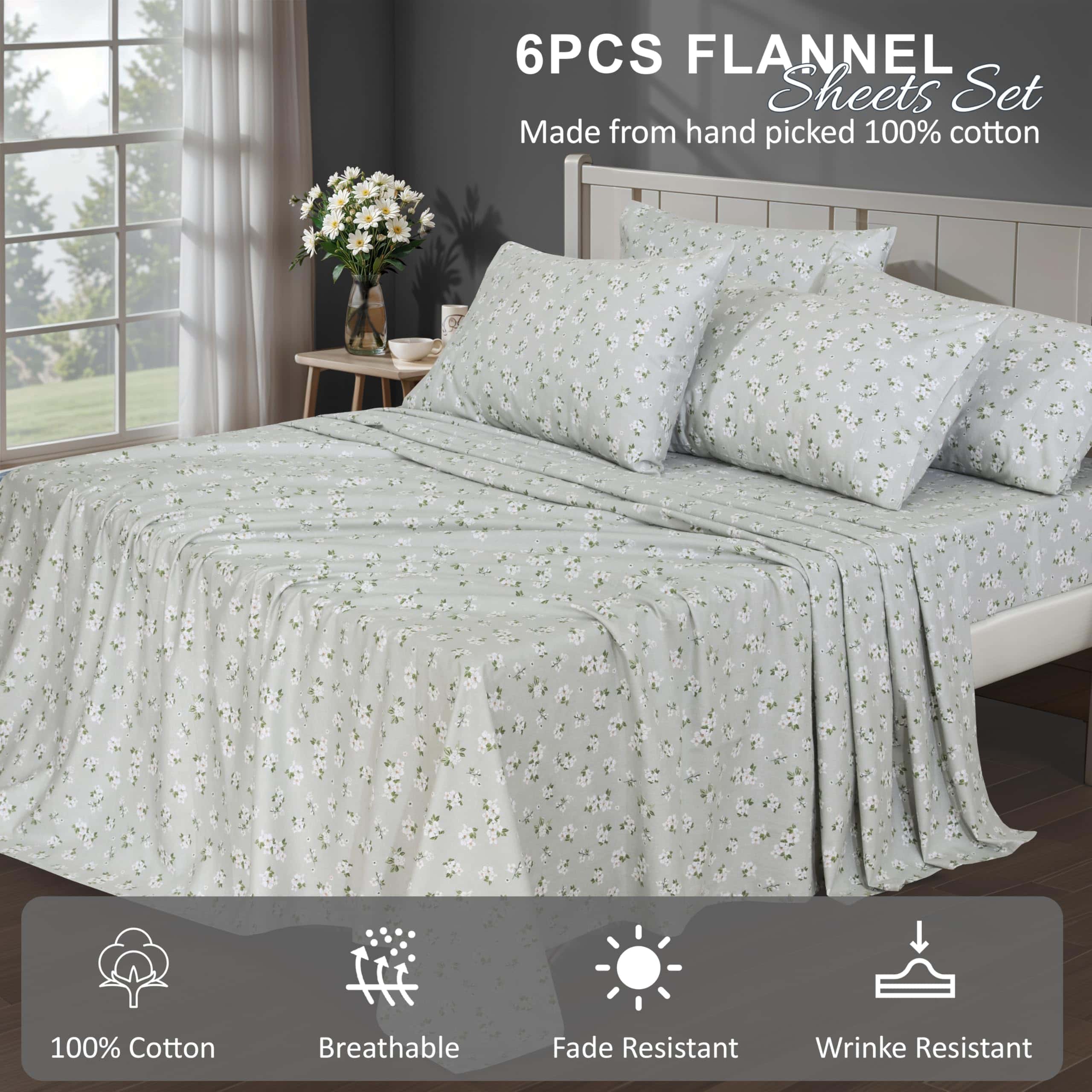 Juego de sábanas de franela RUVANTI de 6 -Weeping Willow