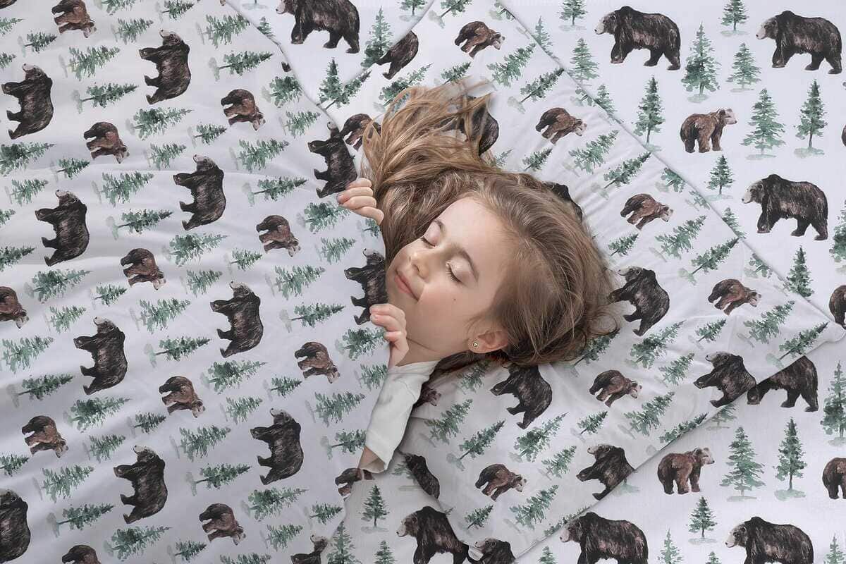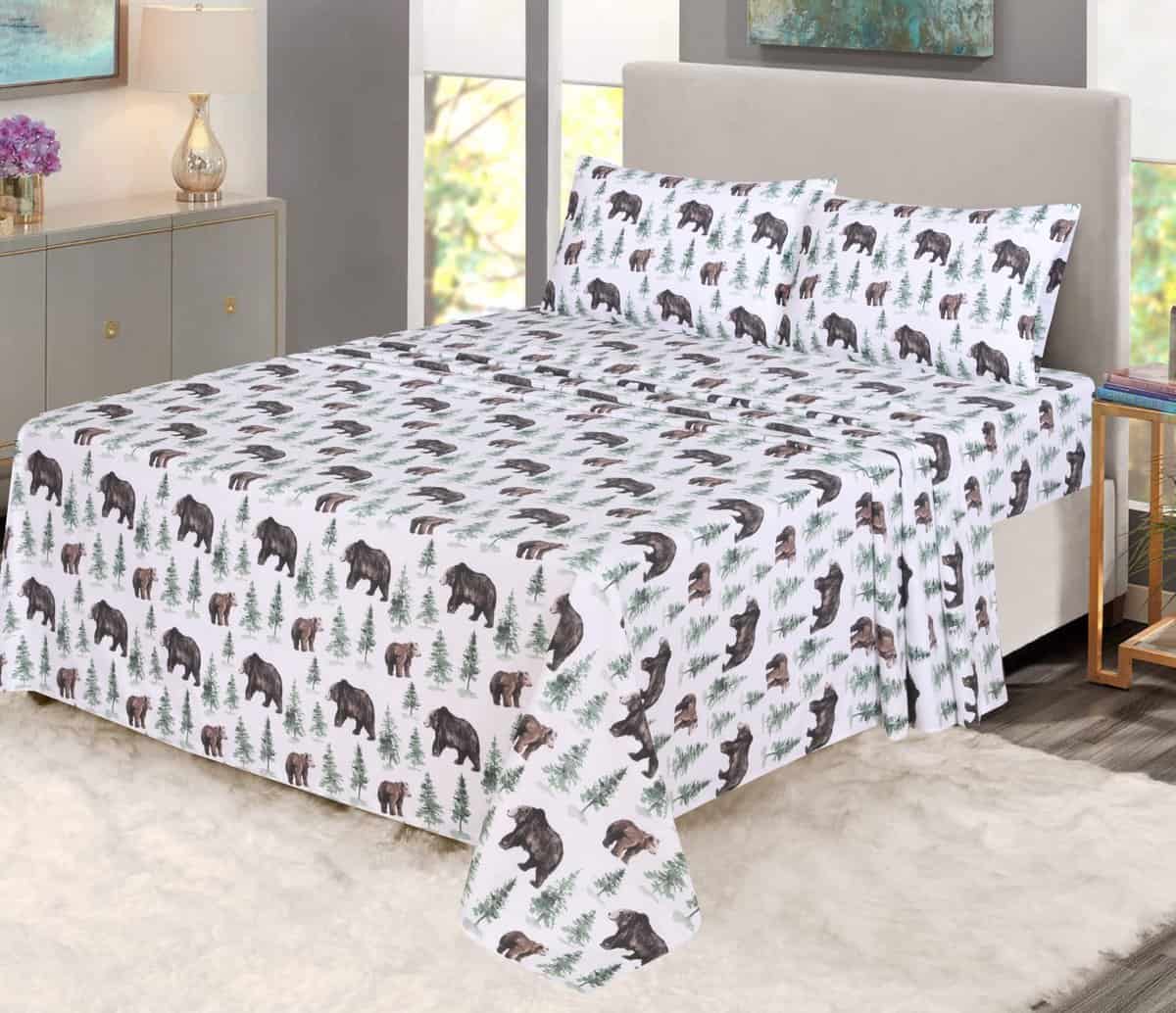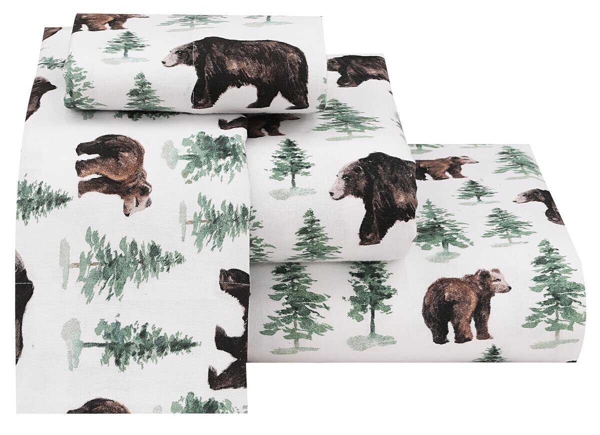 Juego de sábanas de franela RUVANTI Full -Oso y Árbol