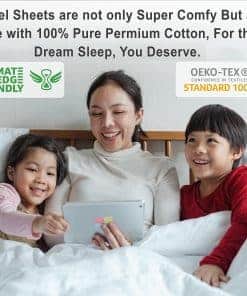 Nuestro juego de sábanas set proporciona una experiencia de sueño lujosa incomparable al tiempo que mejora la comodidad y la durabilidad de tu cama. A pesar de su acogedoridad, estas sábanas ligeras de tamaño completo permanecen transpirables, permitiendo la circulación de aire para mantenerte cómodo mientras duermes. Nuestras sábanas mantienen el equilibrio perfecto entre calor y ventilación. Resistentes a las arrugas y a la pelusa, nuestras sábanas de tamaño completo resisten los lavados múltiples, manteniendo su calidad con el tiempo. Disponibles en diseños versátiles y elegantes para tus seres queridos. Incluye cuatro piezas de tamaño completo: 1 sábana plana (81″ x 96″), 1 sábana ajustable (54″ x 75″) con un bolsillo profundo de 16 pulgadas que se adapta a colchones de hasta 18 pulgadas, y 2 fundas de almohada (20″ x 30″). Nuestras sábanas se fabrican en una fábrica certificada por OEKO TEX para garantizar prácticas seguras y saludables tanto para los trabajadores como para la naturaleza. Siga las instrucciones de cuidado y use agua fría para lavar. Si por alguna razón desea devolver el producto, siga la política de devolución.