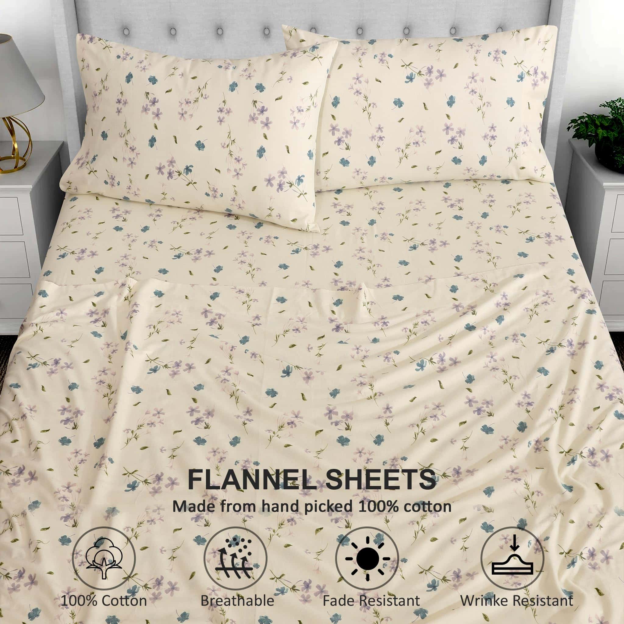 1. información del Producto: Nuestras sábanas de franela 100% algodón, hechas con tela de 160 GSM, cuentan con un acabado de doble cepillado para una sensación suave aterciopelada. Nuestro juego de sábanas proporciona una experiencia de sueño de lujo incomparable mientras mejora la comodidad de tu cama y su bella durabilidad.