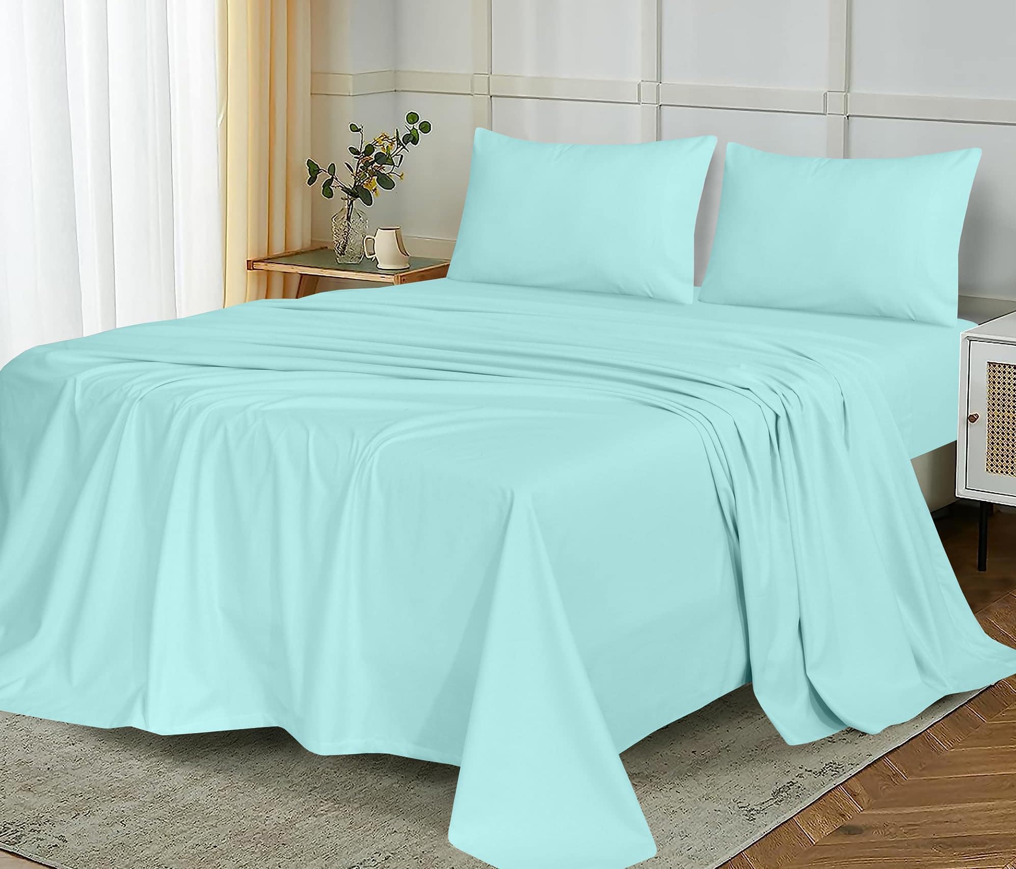 4. Lo Que Se Incluye: Nuestro juego de sábanas tamaño individual incluye tres piezas generosamente proporcionadas. 1 sábana plana (66″ x 96″), 1 sábana ajustable (39″ x 75″) con un bolsillo profundo de 16 pulgadas que se ajusta a colchones de hasta 18 pulgadas, y 1 funda de almohada (20″ x 30″).