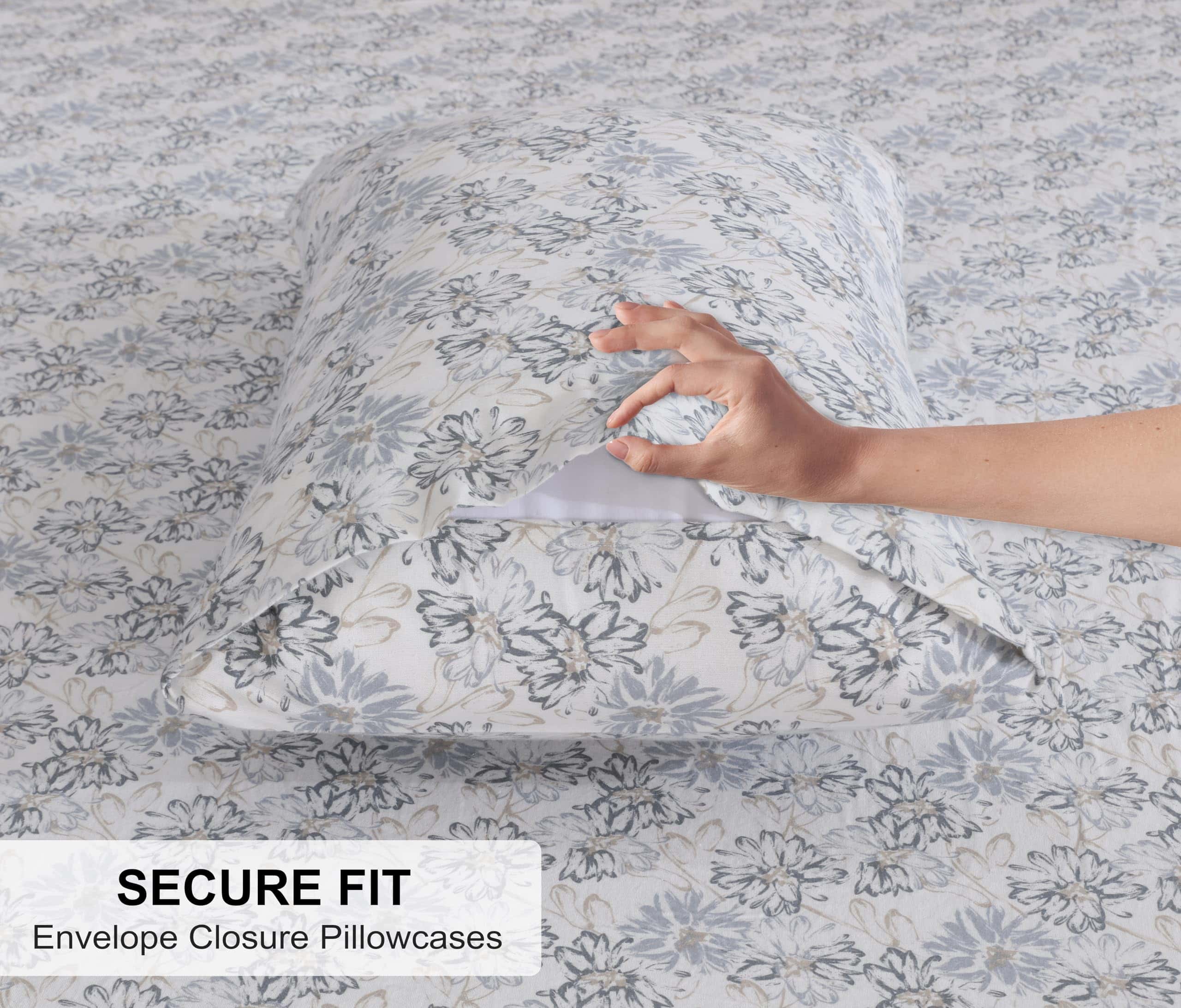 Nuestras sábanas King de resistencia a la decoloración resisten el apelotonamiento y la pelusa, manteniendo su calidad con el tiempo. Disponibles en diseños versátiles y elegantes para sus seres queridos. Incluye: 1 sábana plana (108″ x 102″), 1 sábana ajustable (78″ x 80″) con un bolsillo profundo de 16 pulgadas que se ajusta a colchones de hasta 18 pulgadas, y 2 fundas de almohada (20″ x 36″). Se realizan en una fábrica certificada OEKO TEX para garantizar prácticas seguras y saludables tanto para los trabajadores como para la naturaleza.