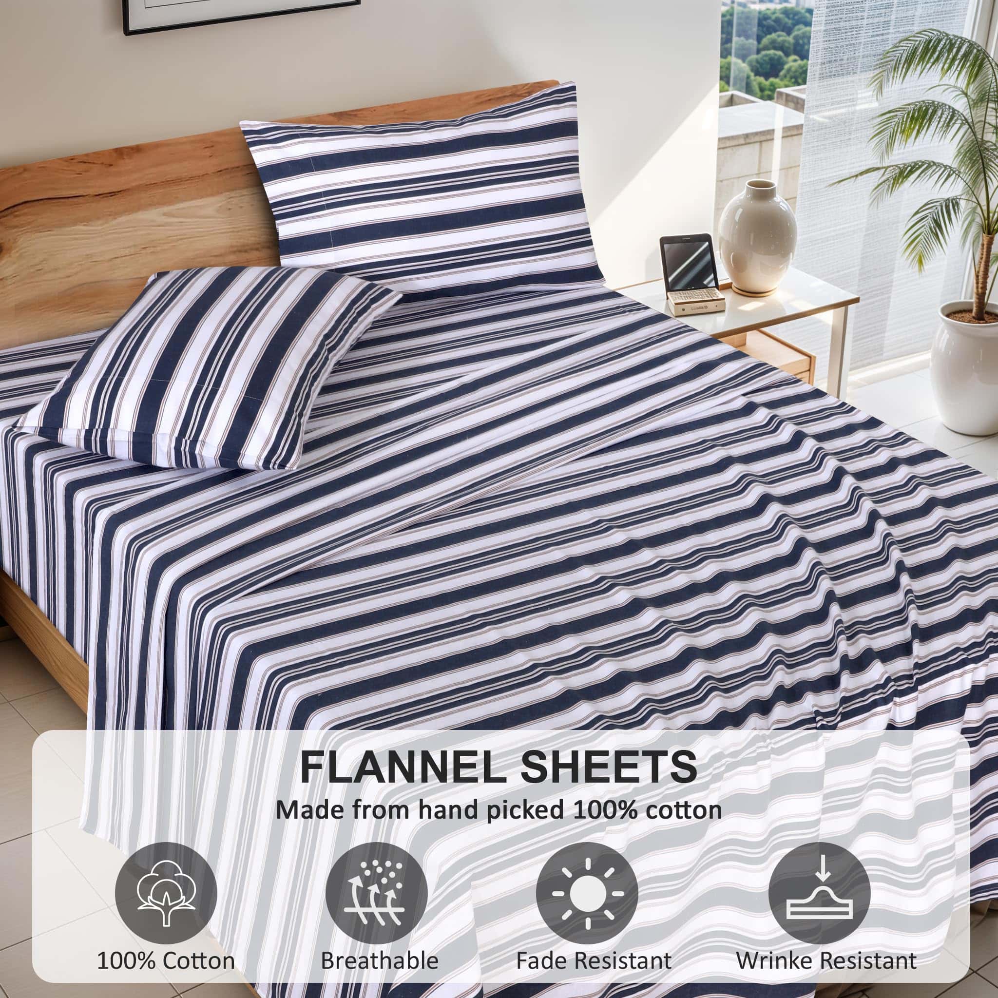 1. Visión del producto: Nuestras sábanas de franela 100% algodón, fabricadas con tela de 160 GSM, cuentan con un acabado de doble cepillado para una sensación suave como terciopelo. Nuestro juego de sábanas proporciona una experiencia de sueño de lujo inigualable al tiempo que mejora la comodidad y la belleza duradera de su cama.