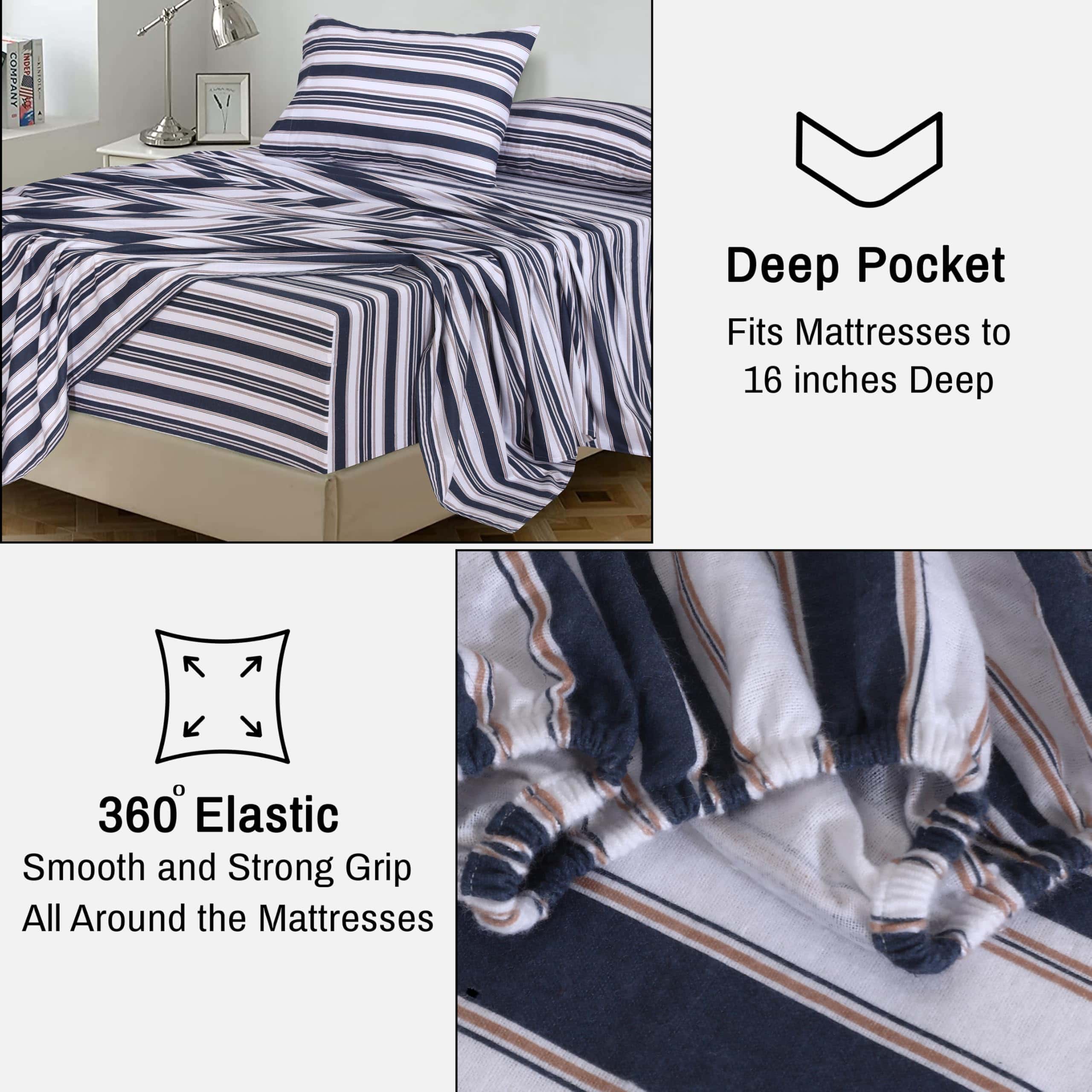 4. Lo que se incluye: Nuestras sábanas de tamaño Twin incluyen tres piezas de tamaño generoso. 1 Sábana plana (66″ x 96″), 1 Sábana ajustable (39″ x 75″) con un bolsillo profundo de 16 pulgadas que se ajusta a colchones de hasta 18 pulgadas, y 1 Funda de almohada (20″ x 30″).