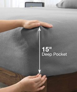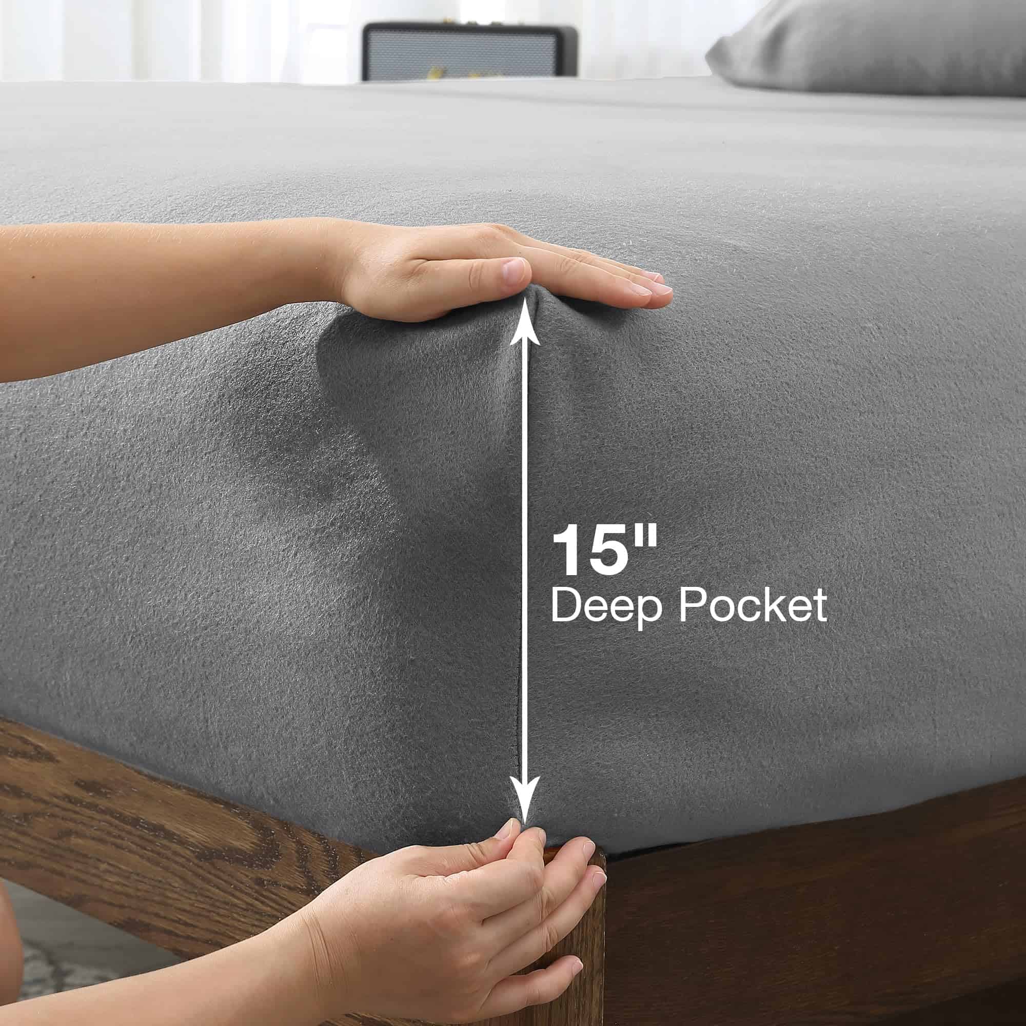 2. SÁBANA AJUSTABLE DE BOLSILLO PROFUNDO: La sábana ajustable con correa elástica de 360 grados se ajustará a colchones gruesos de hasta 15 pulgadas o un colchón con un topper con facilidad. No más molestias al volver a hacer la cama: esta sábana permanecerá en su lugar y encajará perfectamente en su colchón.
