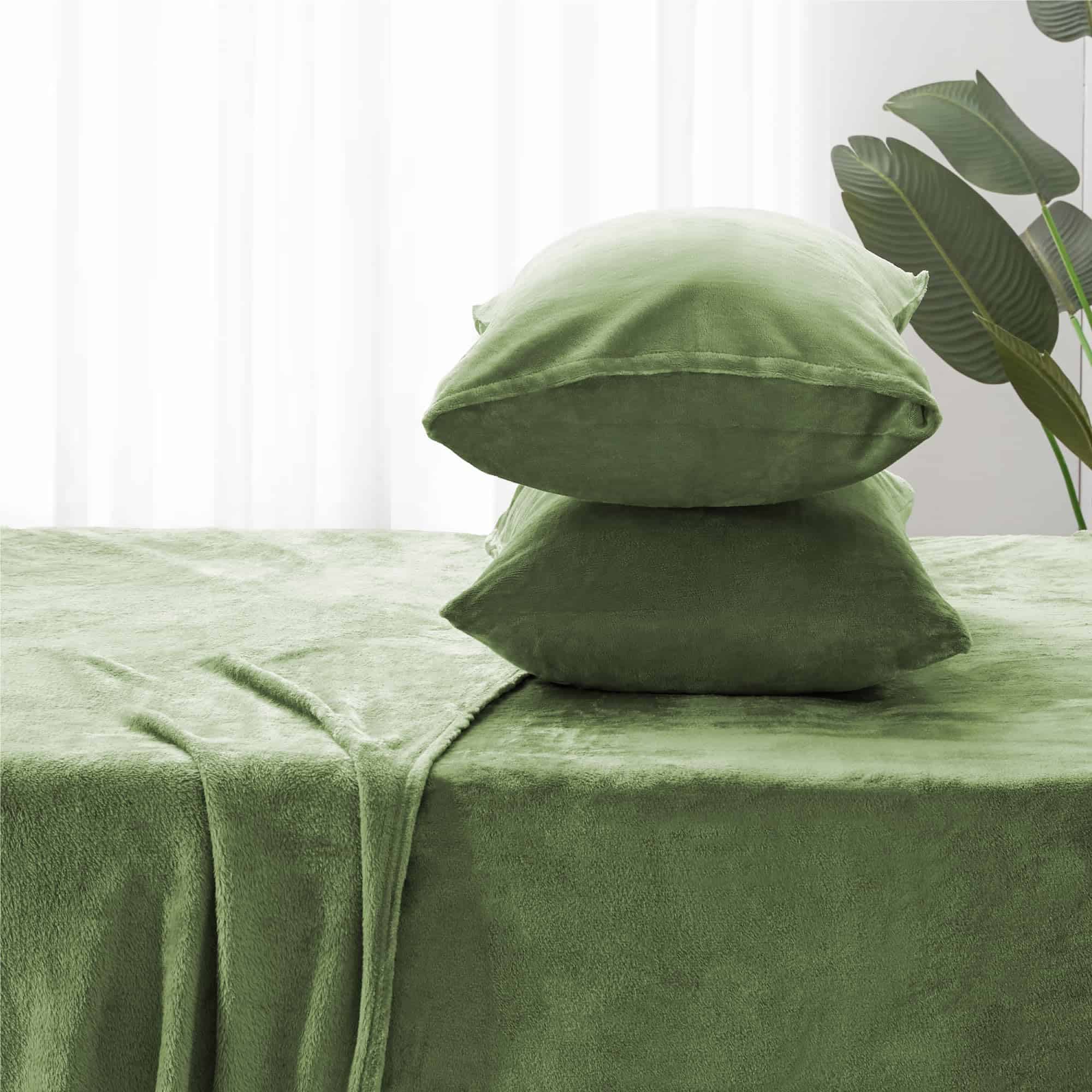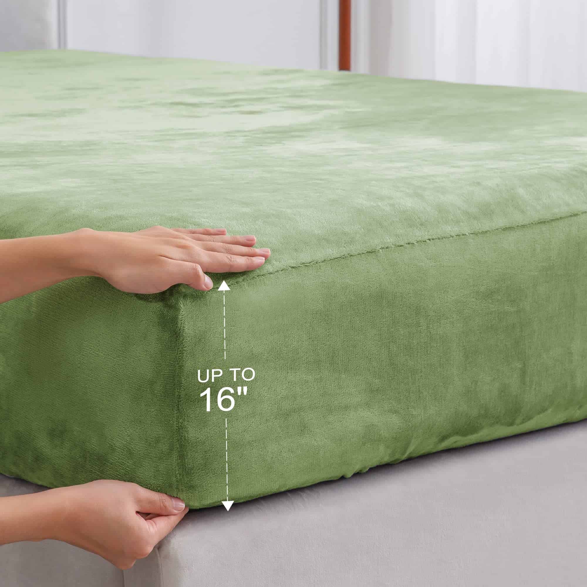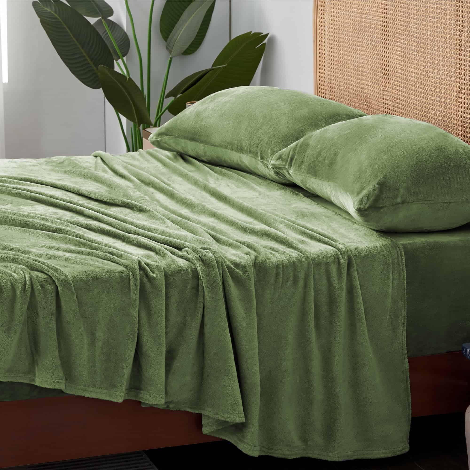 Juego de sábanas de franela tamaño king BEDELITE Sage Green
