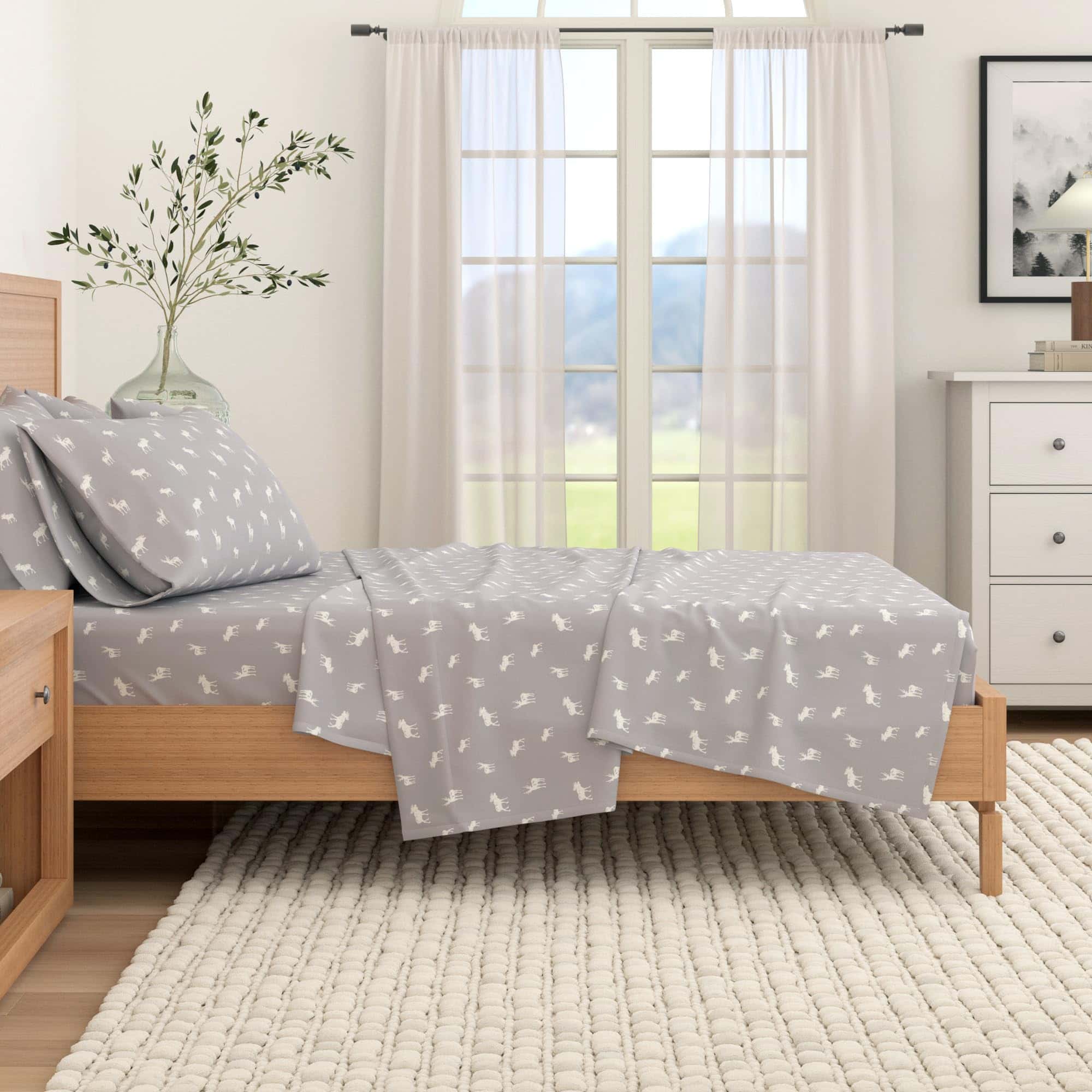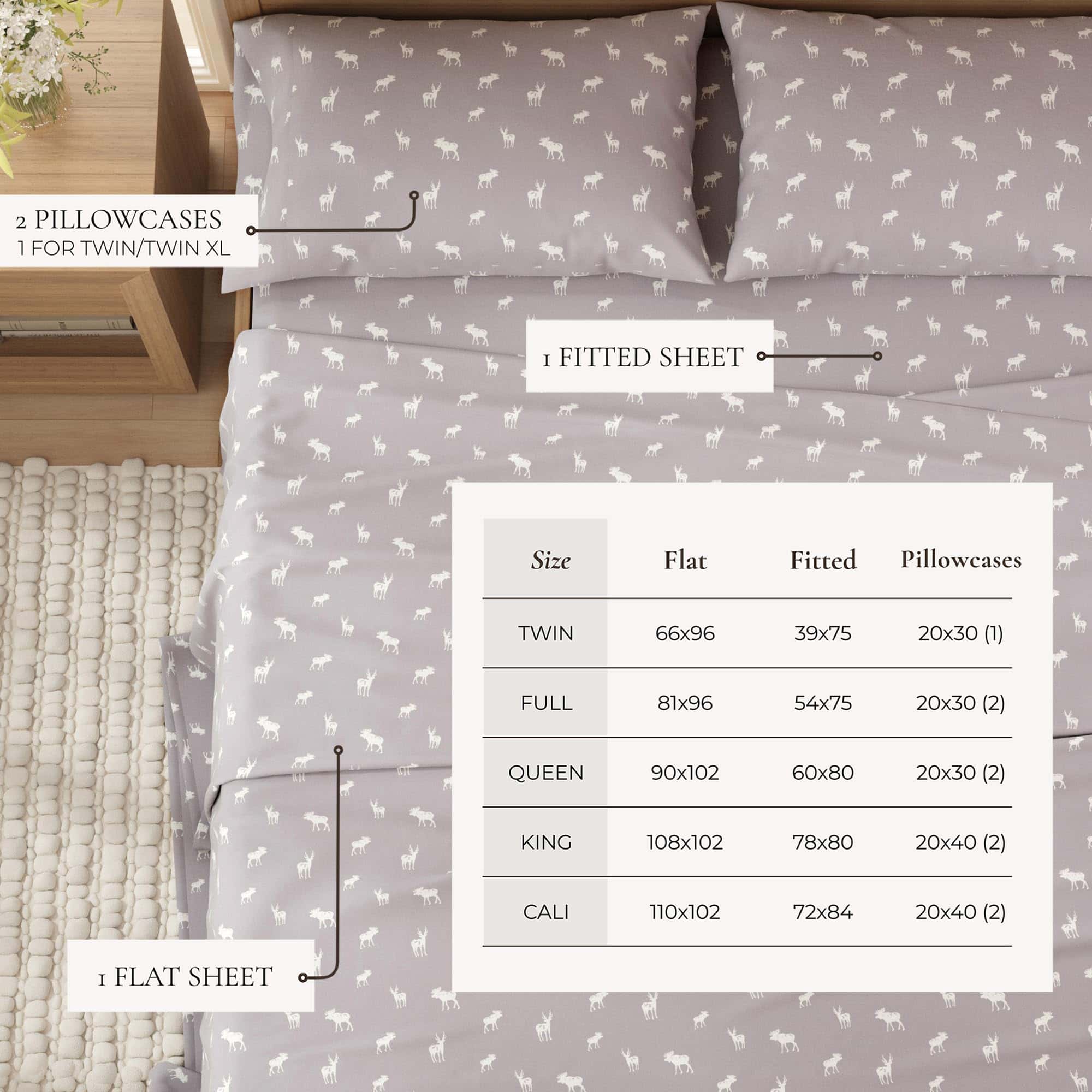 Juego de sábanas de franela tamaño king – -Gris Moose
