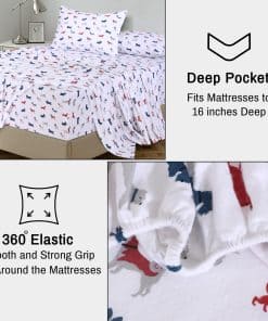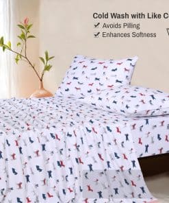 Nuestras sábanas de franela 100% algodón, hechas con tela de 160 GSM, cuentan con un acabado doble cepillado para un tacto suave y aterciopelado. Nuestro juego de sábanas brinda una experiencia de sueño de lujo incomparable al tiempo que mejora la comodidad y la belleza duradera de su cama. A pesar de su comodidad, estas sábanas King ligeras siguen siendo transpirables, permitiendo la circulación de aire para mantenerlo cómodo mientras duerme. El diseño de nuestro juego de sábanas King logra el equilibrio perfecto entre calidez y ventilación. Nuestras sábanas King resistentes a la decoloración pasan por un proceso de fabricación de 9 etapas para la durabilidad. Incluso después de varios lavados, nuestras sábanas resisten la formación de bolitas y pelusa, manteniendo su calidad con el tiempo. Disponibles en diseños versátiles y elegantes para sus seres queridos. Nuestras sábanas tamaño King incluyen cuatro piezas generosamente dimensionadas. 1 Sábana plana (108″ x 102″), 1 Sábana ajustable (78″ x 80″) con un bolsillo profundo de 16 pulgadas que se adapta a colchones de hasta 18 pulgadas, y 2 Fundas de almohada (20″ x 36″). Nuestras sábanas se fabrican en una fábrica certificada por OEKO TEX para garantizar prácticas seguras y saludables tanto para los trabajadores como para la naturaleza. Siga las instrucciones de cuidado y use agua fría para lavar. Si por cualquier motivo desea devolver el producto, siga la política de devolución.