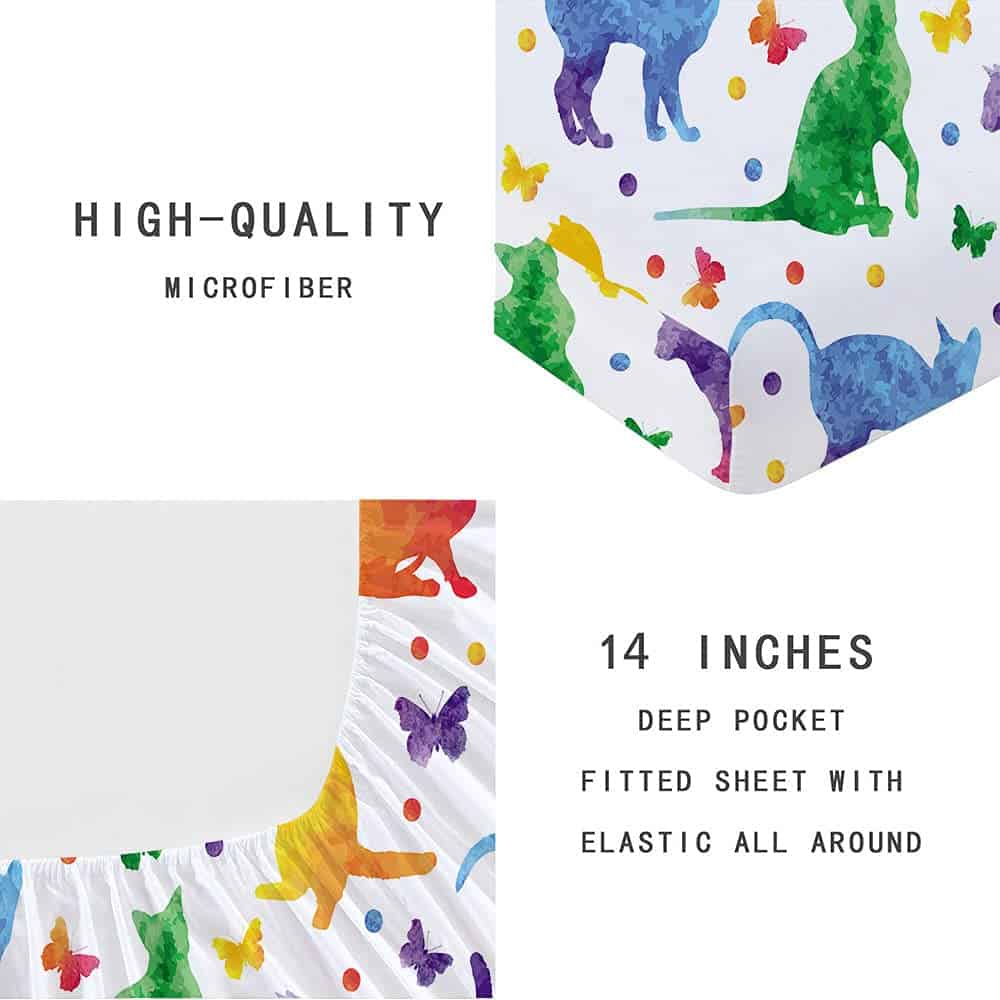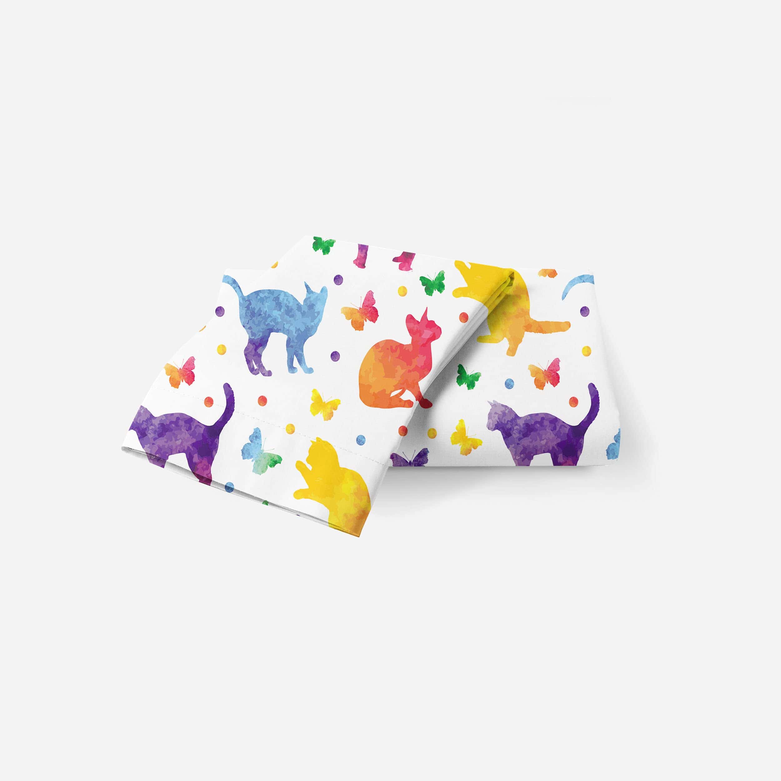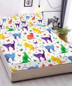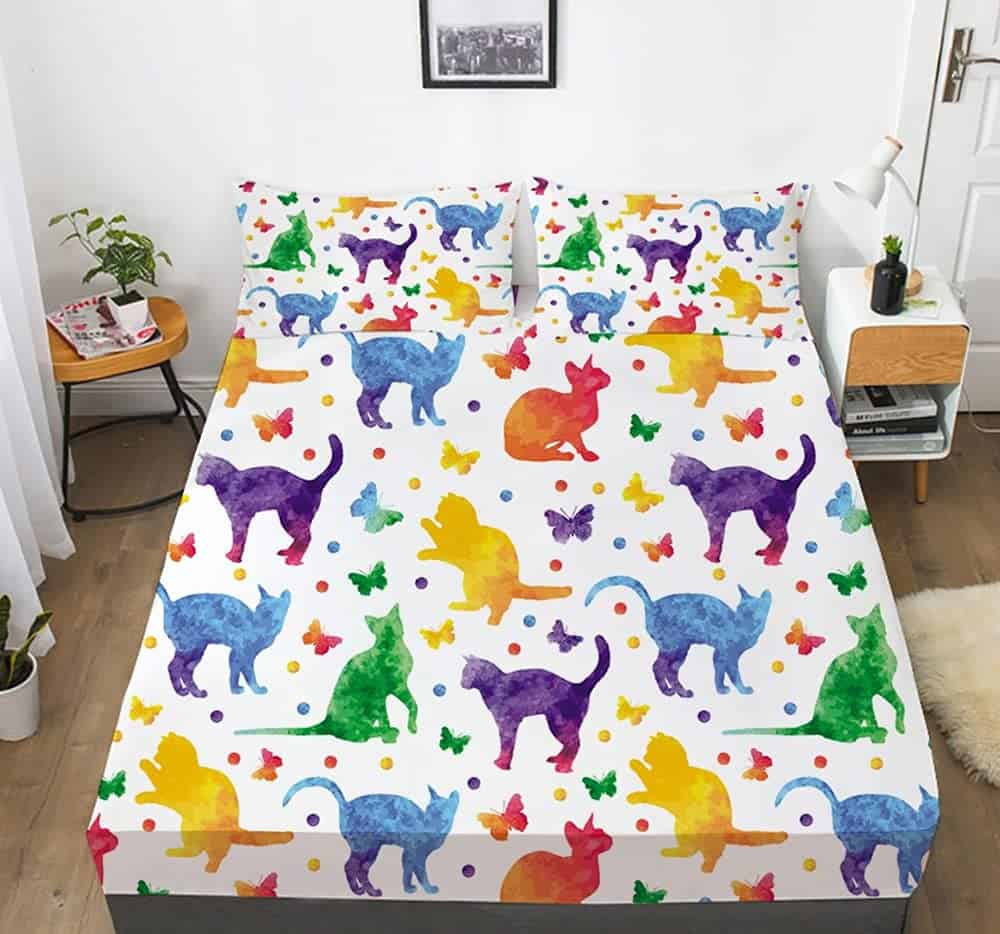 Conjunto de Cama de Sábana Ajustable y Funda de Almohada con Gato de Acuarela Impreso en 3D, Divertido y Elegante Set de Ropa de Cama para el Dormitorio de Niños, Niñas y Adolescentes. Microfibra Premium, Suave, Acogedora, Cómoda, Transpirable, Sin Arrugas para Usar en Todas las Estaciones.
