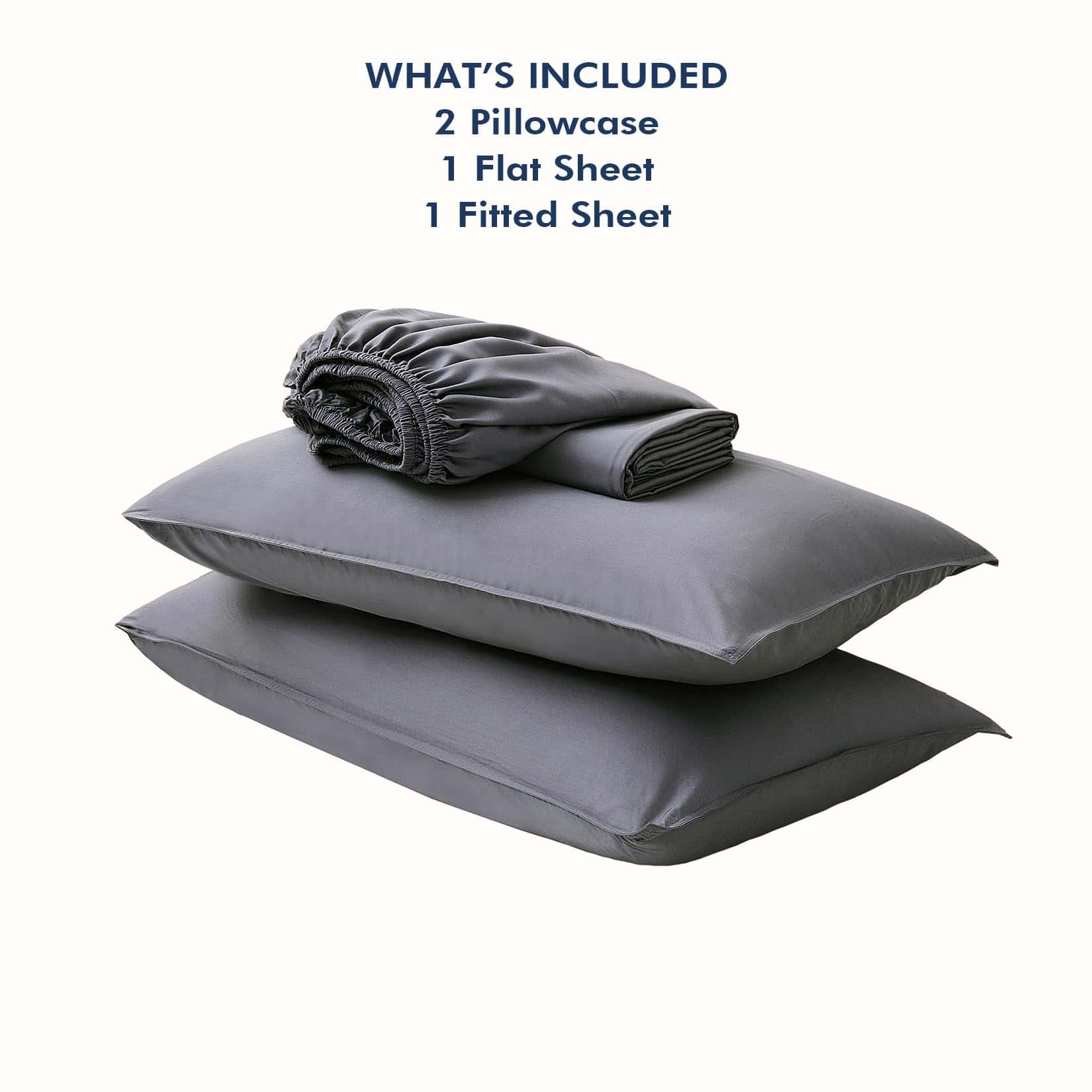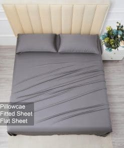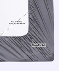Nuestro juego de sábanas está hecho de Rayon, fibra de 155 gramos por metro cuadrado, lo que te brinda un tacto ultra suave y fresco y te hace enamorarte de él. ¡Estas sábanas frías son perfectas para personas que tienden a calentarse mientras duermen, manteniéndolas frescas en verano y cálidas en invierno! Además, absorben la humedad y el sudor, ¡evitando que sudes! Las sábanas son certificadas por OEKO-TEX Standard 100, libres de sustancias y materiales dañinos. La sábana ajustable tiene bolsillos profundos con correas elásticas alrededor que son adecuados para colchones de hasta 38.1 cm de altura, brindando la combinación ideal de funcionalidad y calidad.