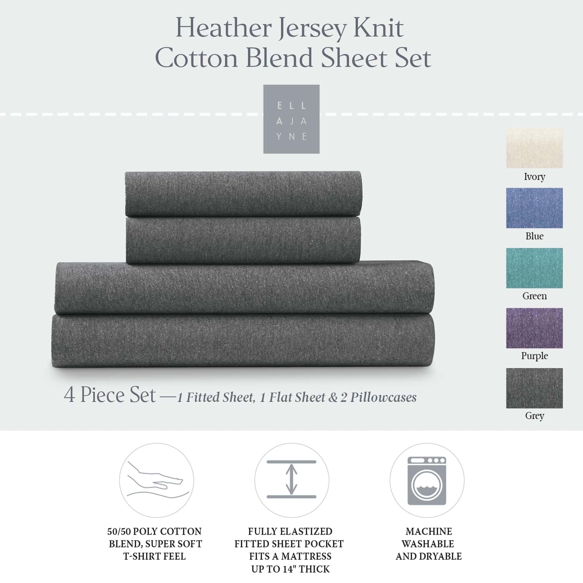 Juego de sábanas de Jersey Knit de Ella Jayne (4 piezas),