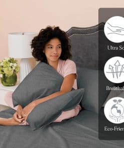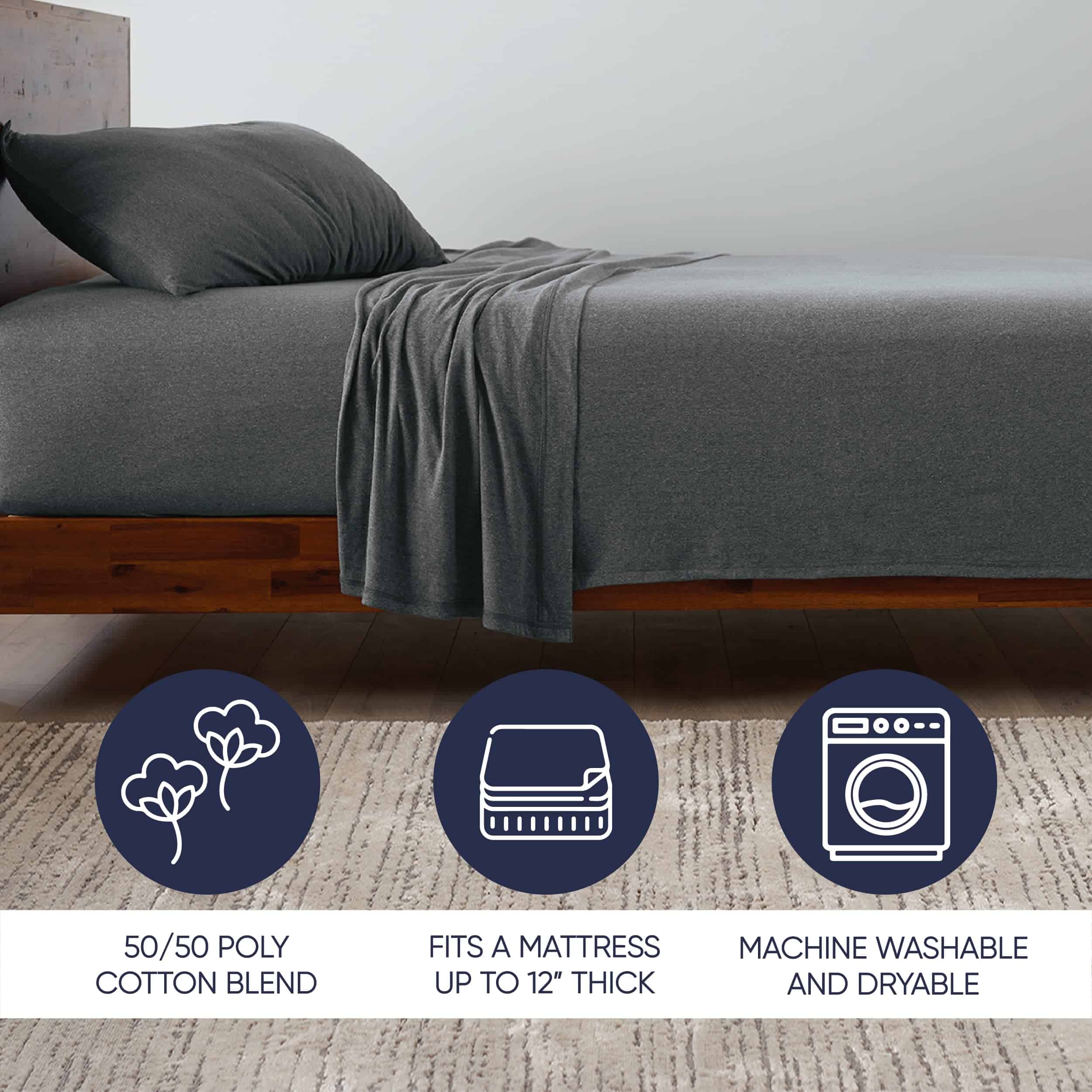 1. Abraza el confort sofisticado: Descubre la perfecta combinación de relajación con nuestra Colección Básica de Ella Jayne. Nuestro Juego de Sábanas de Jersey King, reminiscente de tu camiseta más suave, ofrece una experiencia de sueño inigualable. Sumérgete en la comodidad del jersey de melange heather, asegurando un descanso rejuvenecedor todas las noches. 2. Suavidad de camiseta para una calidad de sueño suprema: Nuestro Juego de Sábanas de Jersey envuelve tu piel con suavidad incomparable. Diseñadas para imitar el abrazo acogedor de tu camiseta favorita, estas sábanas garantizan un sueño tranquilo y dulces sueños, manteniéndote cómodamente dormido hasta la mañana. 3. Paleta de elegancia: Eleva la estética de tu dormitorio con nuestra versátil gama de colores. Desde neutros serenos hasta tonos vibrantes, nuestro Juego de Sábanas de Jersey King Size está disponible en 5 hermosos colores sólidos, permitiéndote personalizar tu santuario a tu gusto. 4. Durabilidad se encuentra con el confort lujoso: Con una mezcla premium de 65/35 polialgodón, nuestras Sábanas de Algodón de Jersey equilibran la durabilidad con el confort mullido del algodón. Esta mezcla no solo mejora la sensación suave y elástica, sino que también asegura que tus sábanas se mantengan vibrantes y menos propensas a la formación de bolitas, lavado tras lavado. 5. Ajuste perfecto y fácil mantenimiento: Cada juego incluye 1 sábana plana, 1 sábana ajustable con un bolsillo elástico de 10 pulgadas para colchones de hasta 10″ de grosor, y 2 fundas de almohada (1 para tamaños twin), prometiendo un ajuste perfecto. Disfruta de la conveniencia de nuestras sábanas lavables y secables a máquina, diseñadas para un cuidado sin esfuerzo.