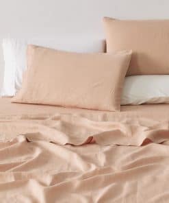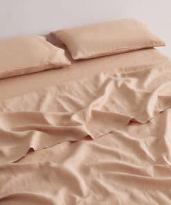 Sábanas naturalmente relajadas para tu estética de vida. Estas sábanas están certificadas 100% de lino europeo y están elaboradas éticamente en Pakistán; están hechas para sentirse bien. El lino es naturalmente que absorbe la humedad y regula la temperatura, diseñado para ayudarte a mantenerte fresco en verano y cálido en invierno, estas sábanas son ideales para todas las estaciones. Con bolsillos de 16″, una sábana ajustable extra fuerte y fundas de almohada con apertura lateral y dobladillo oculto, este juego facilita hacer la cama. Estas sábanas están certificadas por OEKO-TEX Standard 100 y BSCI (Iniciativa de Cumplimiento Social Empresarial).