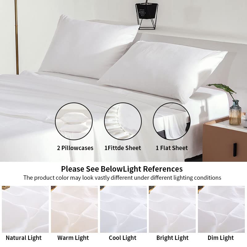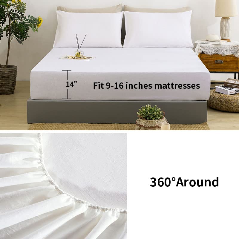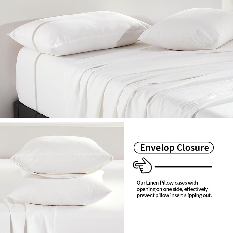 5. Paquete incluido y color y tamaño – El juego de sábanas de lino de California king de 4 piezas incluye 1 sábana plana de lino (108.28″ 102.36″), 1 sábana bajera ajustada de lino (72.05″ 84.25″ x14.96″) y 2 fundas de almohada de lino (20.08″ 40.16″). Color: Blanco; Tamaño: California King; La sábana ajustada tiene un diseño de bolsillo extra profundo con elástico de 360 grados alrededor, adecuado para la mayoría de los colchones.