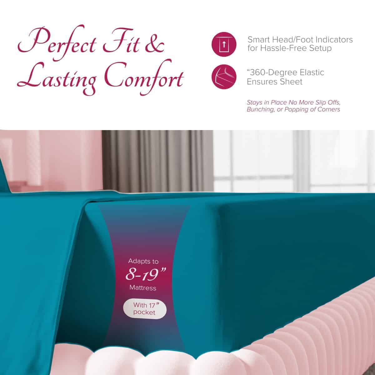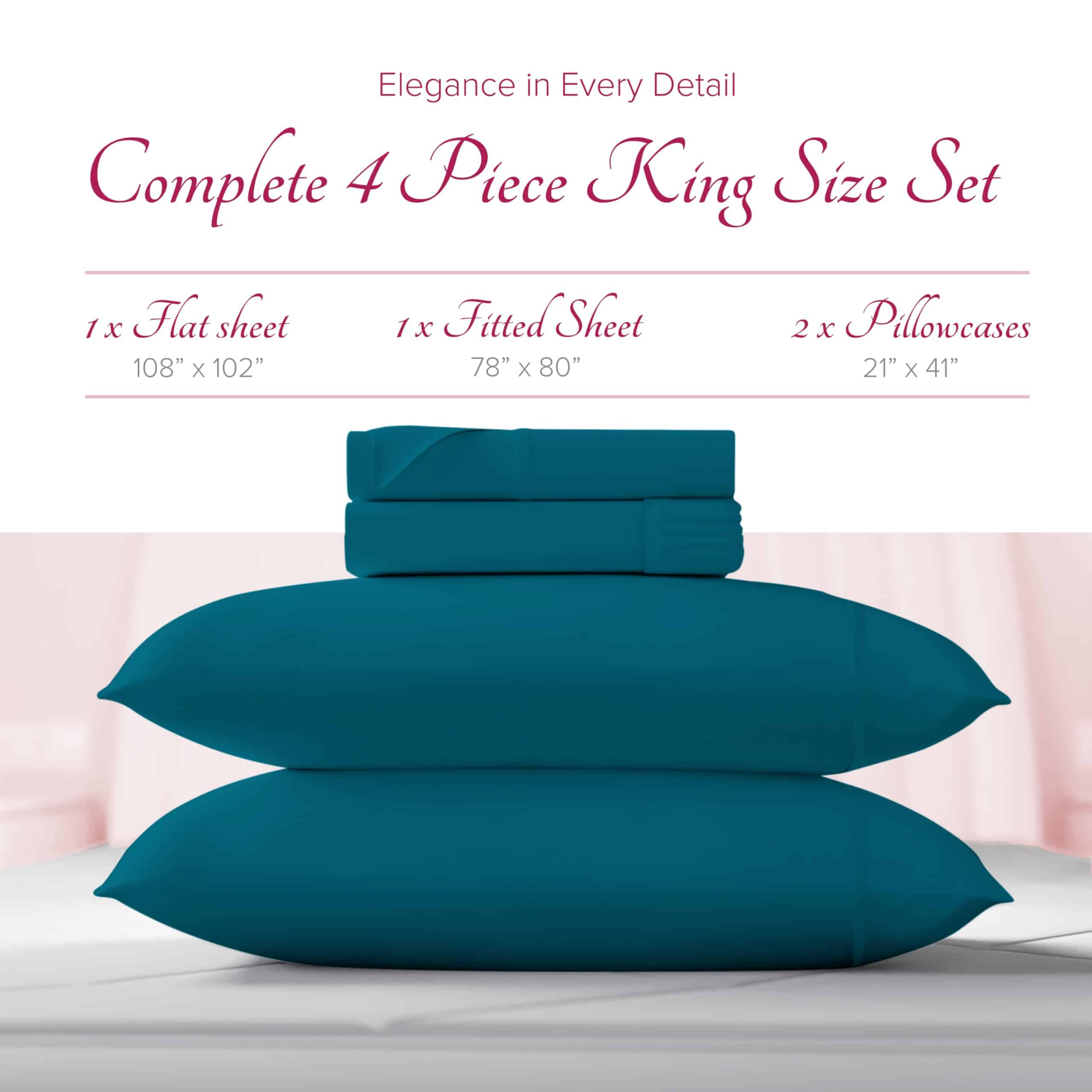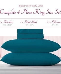 4. Incluye un completo y adecuado juego de sábanas de 4 piezas: El juego de sábanas king size de algodón egipcio incluye 4 piezas – 1 sábana plana (102″ x 108″), 1 sábana ajustable (78″ x 80″ + 17″), y 2 fundas de almohada king size (21″ x 41″). La sábana ajustable elástica viene con un bolsillo extra profundo de 17 pulgadas para acomodar fácilmente colchones regulares y altos de hasta 19 pulgadas. Las fundas de almohada tienen un cierre abierto para que las almohadas extragrandes puedan deslizarse fácilmente.