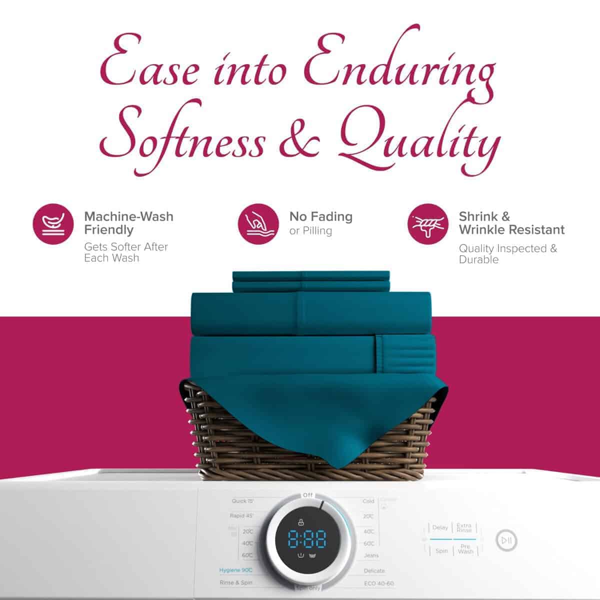 5. Dura décadas resistente a las arrugas y a la decoloración: Mercerizadas hasta el último hilo, nuestro juego de sábanas king de algodón egipcio conserva su color brillante incluso al lavarlo y resiste naturalmente la formación de bolitas y la decoloración. Si se cuidan correctamente, nuestras sábanas king de algodón egipcio pueden durar años. Lavar a máquina en agua tibia. Lavado por separado en ciclo suave. Secar en secadora a baja temperatura. Ten en cuenta que las sábanas de algodón egipcio se arrugan de forma natural en el lavado. Planchar ligeramente después de sacarlas de la secadora para un aspecto suave.