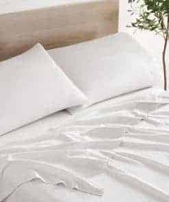 1. ASPECTO CLÁSICO DE LINO: La textura clásica del lino es suave y acogedora al tacto, mientras que el Tencel ofrece cualidades de caída superiores haciendo que esta sábana sea suave y elegante en su cama. Este juego de sábanas de lujo está hecho de una mezcla única de hilos de lino eucalipto lyocell y lino tradicional.