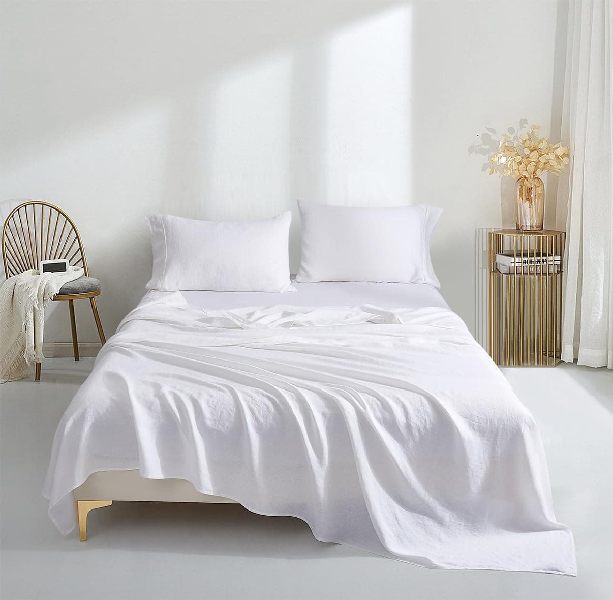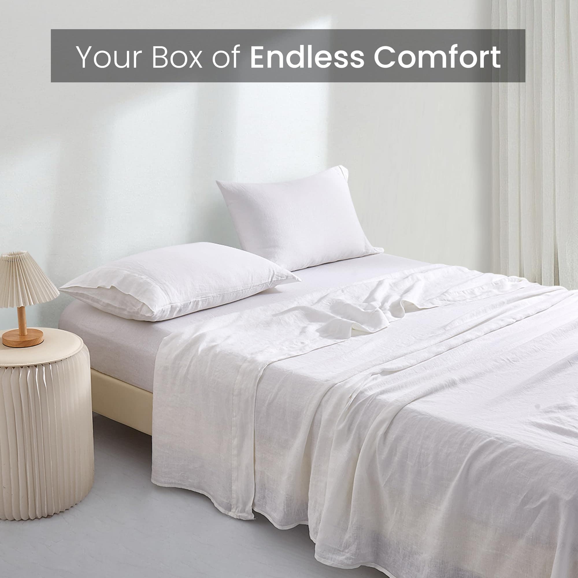 5. Cuidado Sencillo – Nuestro set de sábanas king de lino al 100% es apto para lavadora y está diseñado para volverse más suave con cada lavado. Las fibras naturales resisten las manchas y olores, garantizando que tus fundas de lino ajustables y mantas de lino se mantengan frescas y acogedoras!