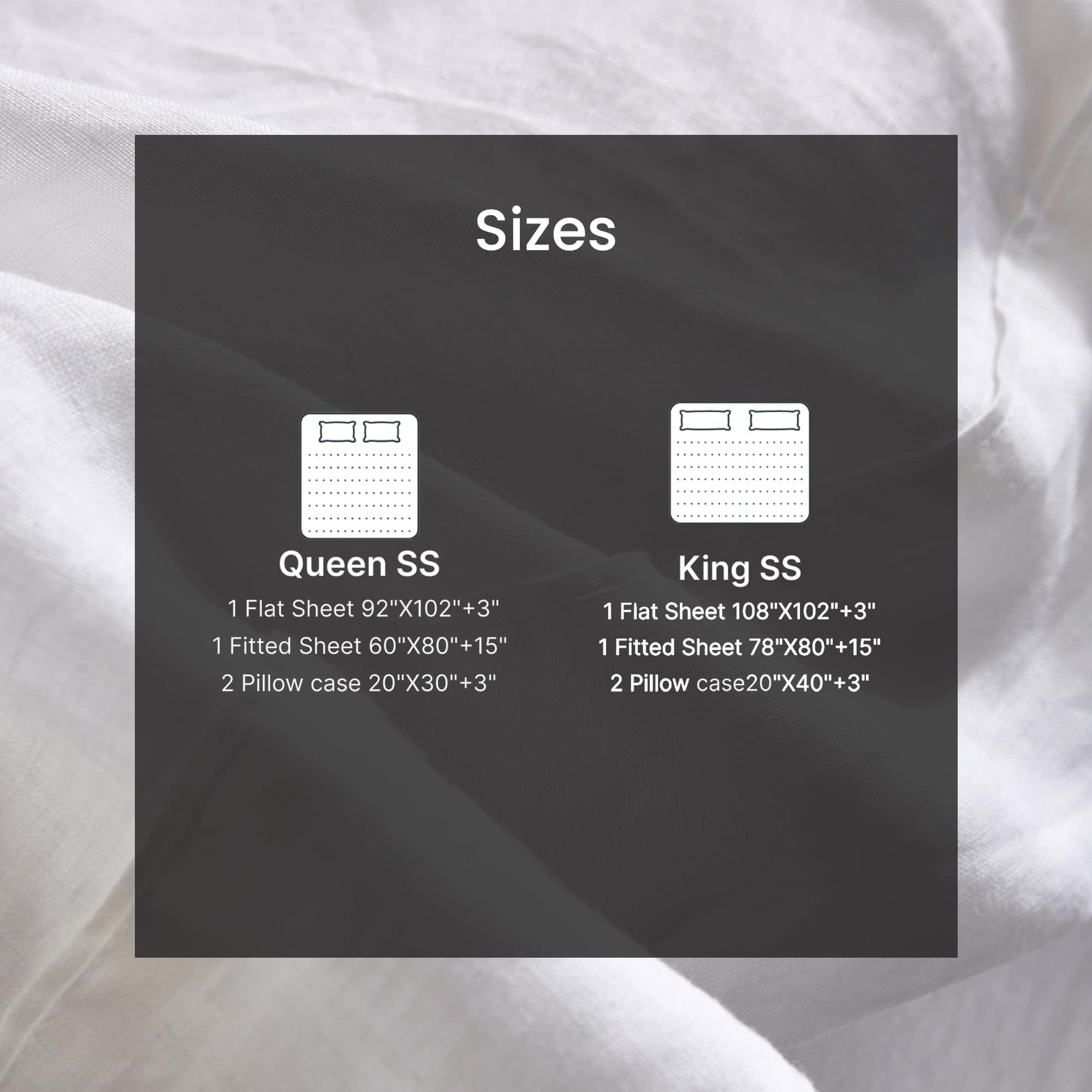 4. Ajuste y Funcionalidad Versátiles Juego Completo – Cada set de sábanas king de lino incluye una sábana ajustable, una sábana plana y dos fundas de almohada, convirtiéndolo en el conjunto de ropa de cama perfecto.