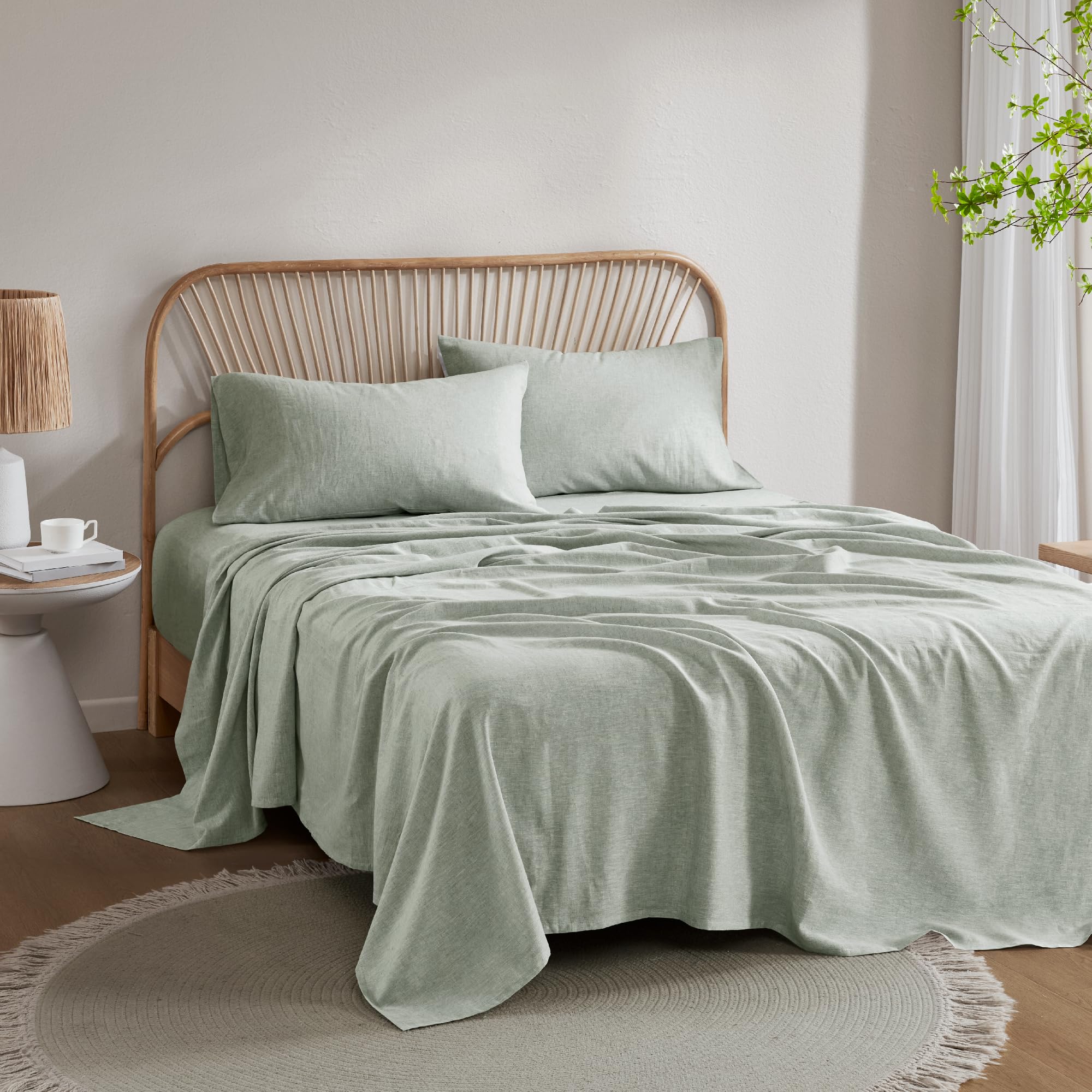 1. Mezcla de lino y algodón premium para mayor comodidad. Las sábanas de lino de algodón de Hyde Lane combinan un 55% de lino natural con un 45% de algodón, ofreciendo transpirabilidad y suavidad. Ideal para usar durante todo el año, estas sábanas de lujo proporcionan comodidad transpirable y una experiencia de sueño reparador.