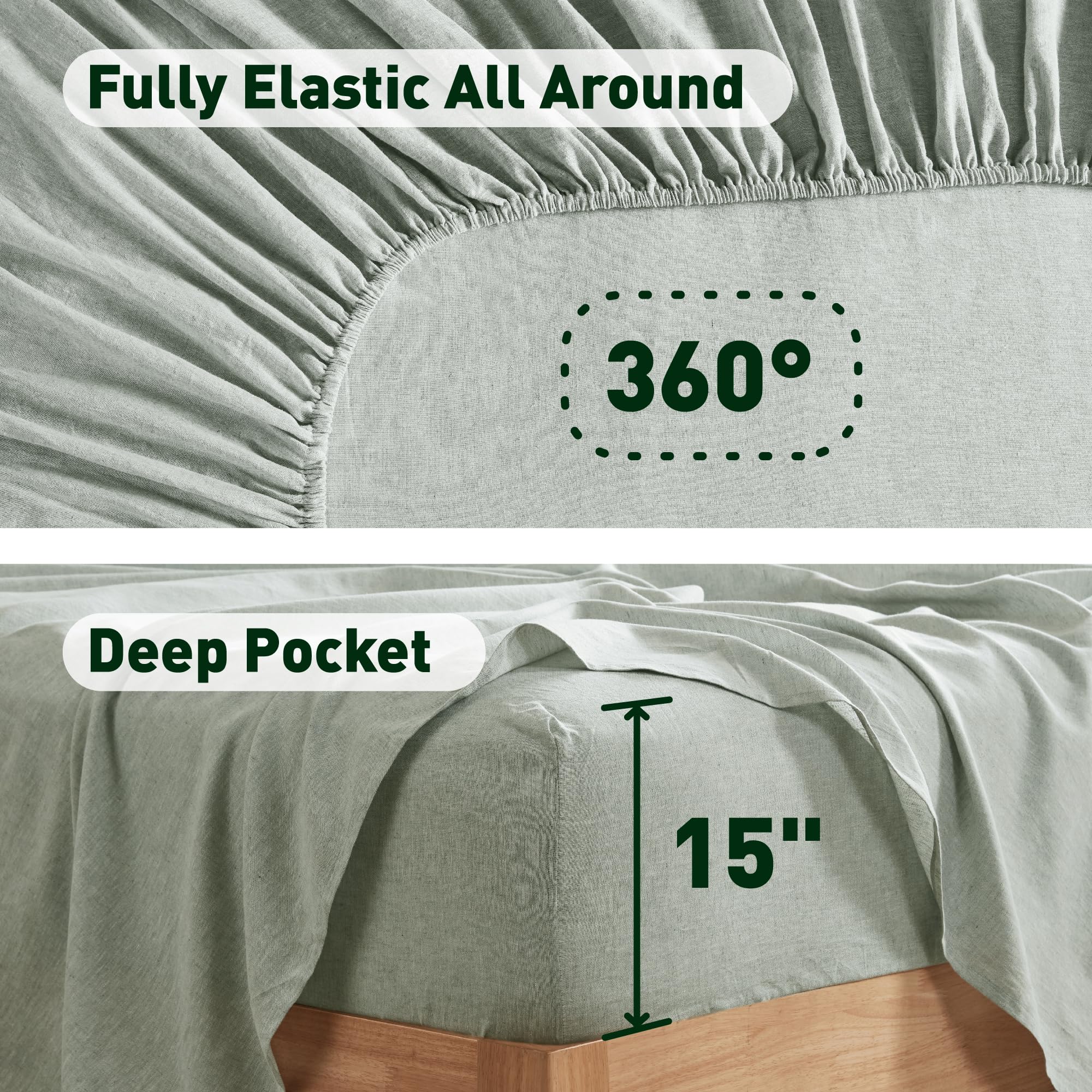 3. Ajuste perfecto para colchones profundos. Nuestras sábanas de lino para cama cuentan con un bolsillo profundo de 15 pulgadas, diseñado para adaptarse ajustadamente a colchones profundos y permanecer en su lugar. Disfruta de una superficie segura y suave con una sensación de lujo que mejora el sueño reparador.