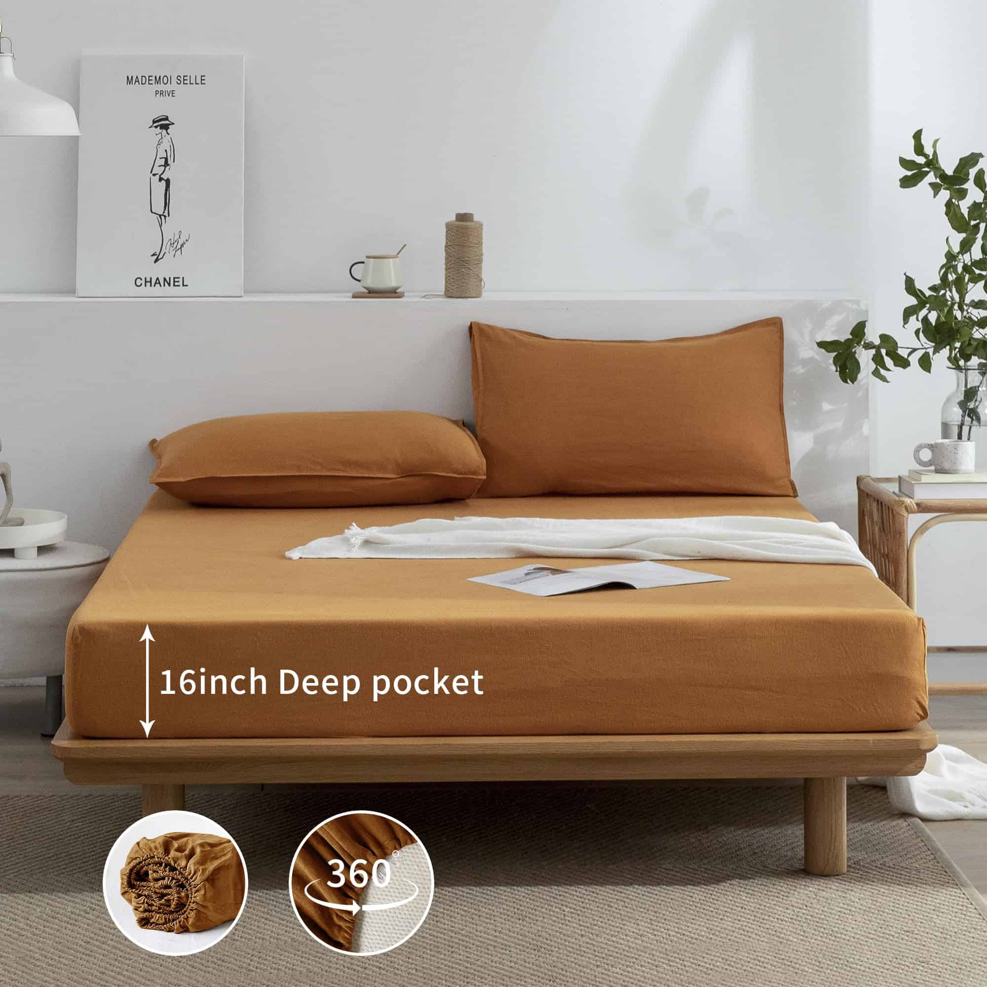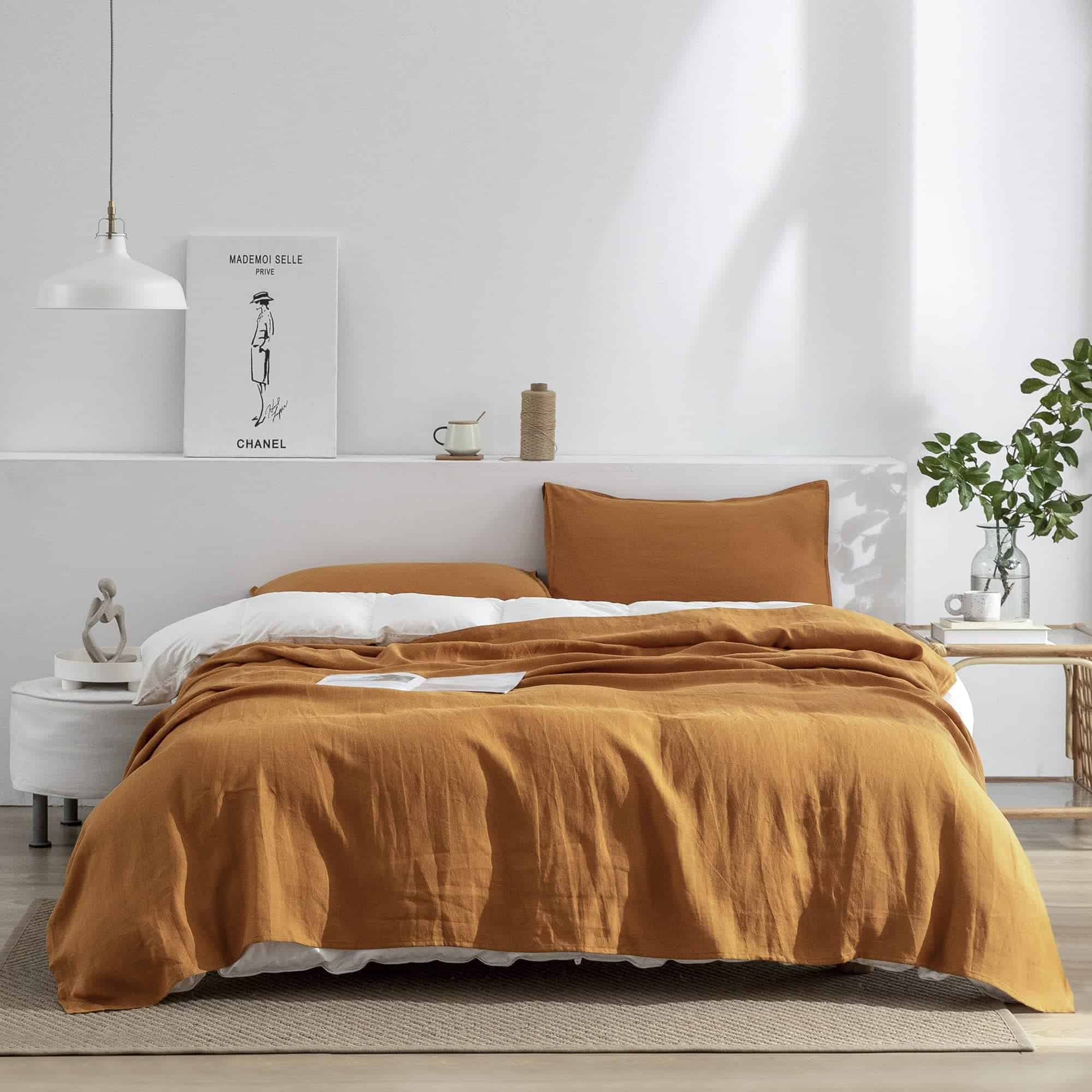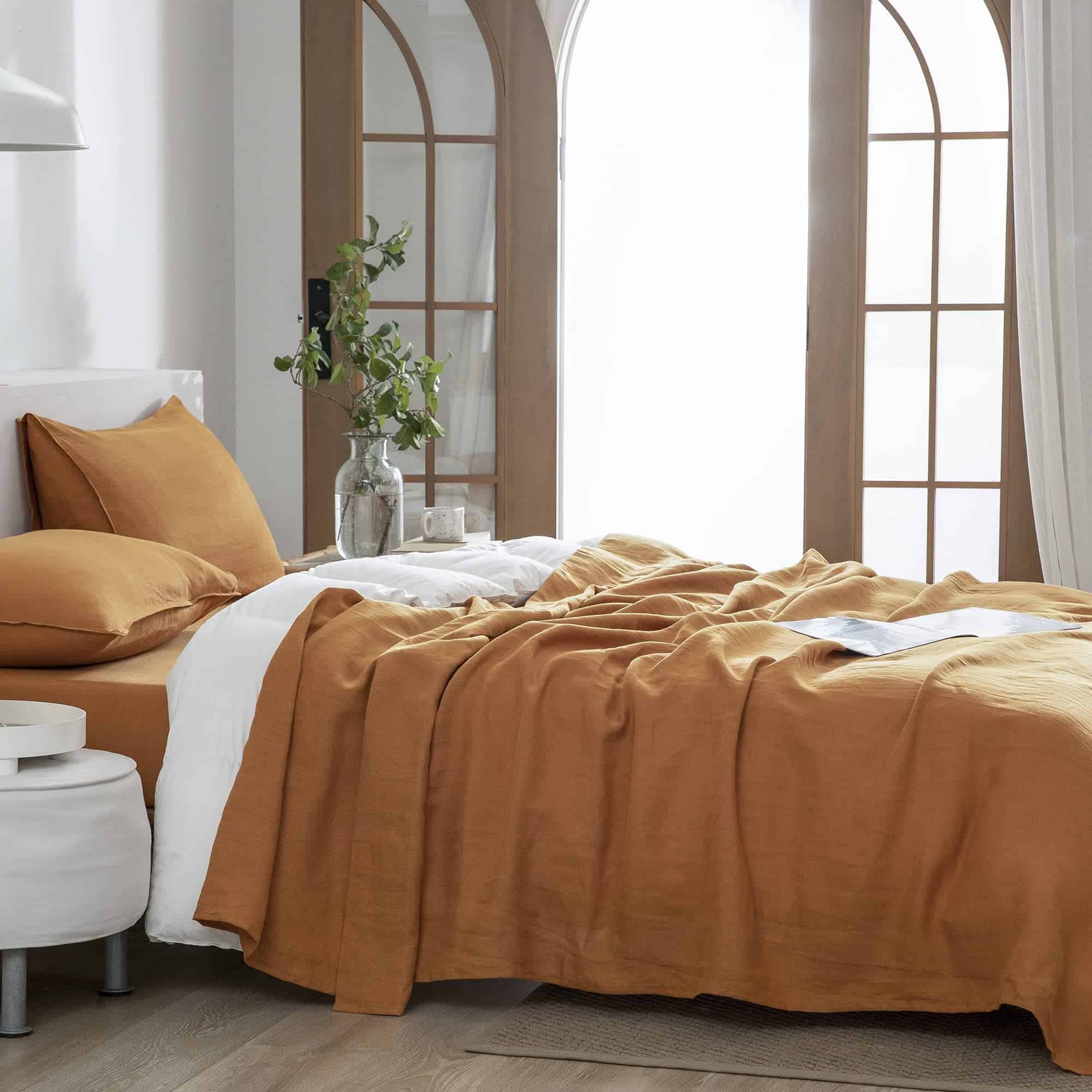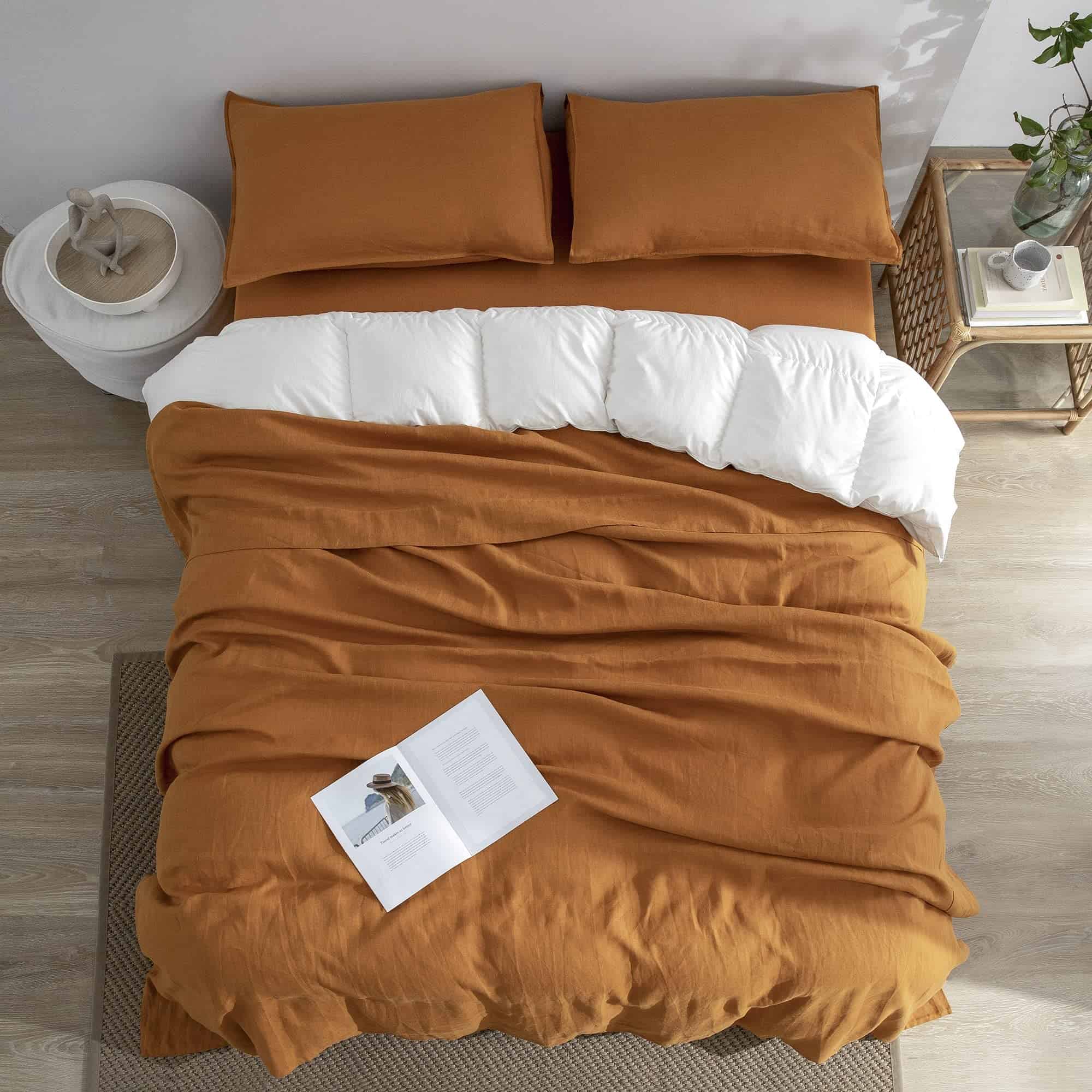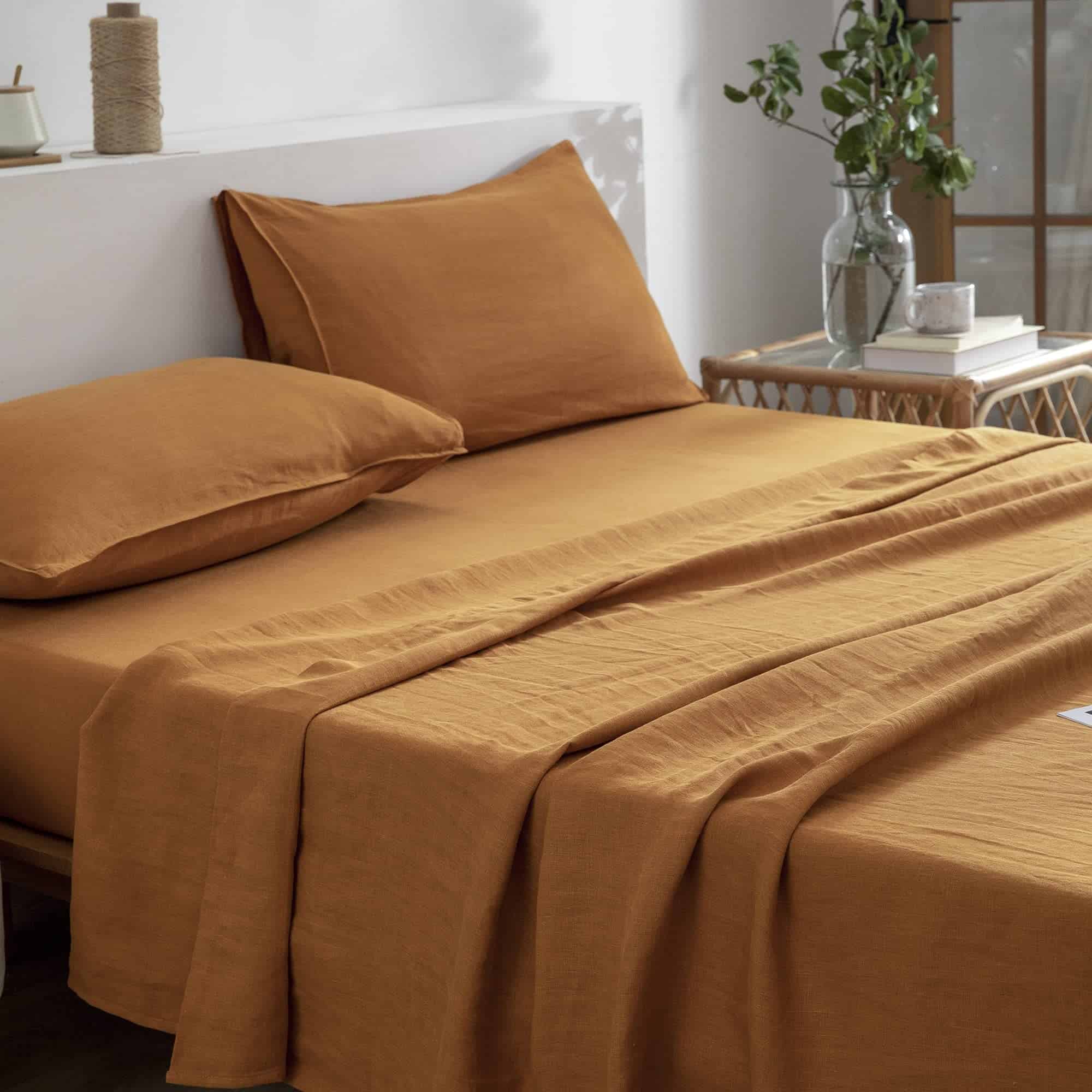Juego de sábanas de lino EVERLY Queen Size, -Caramelo