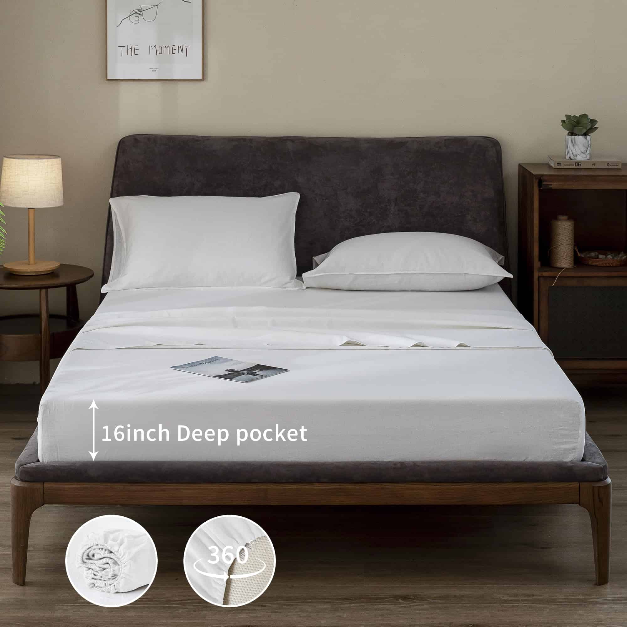 Juego de sábanas de lino EVERLY tamaño queen, 100% lino puro lavado a la piedra de origen francés, adecuado para personas que duermen calientes y profundamente. El juego de sábanas incluye 1 sábana plana, 1 sábana ajustable y 2 fundas de almohada. La sábana ajustable tiene un bolsillo profundo que se adapta a colchones de hasta 16″ de profundidad y está elásticamente ajustada en todo el contorno para fijar tu colchón sin hacer bultos. Los bordes de doble pespunte hacen que el juego de sábanas de lino sea duradero y evitan los desgarros. El lino es transpirable y equilibra el calor de tu cuerpo durante toda la noche, garantizando así un sueño acogedor durante todo el año. El juego de sábanas es un regalo de inauguración perfecto para amigos y familiares. Las instrucciones de cuidado incluyen no usar lejía, lavar en seco ni usar detergente con cloro. Lavar en máquina en frío por separado con un ciclo suave. Secar a baja temperatura o planchar si es necesario. Es normal que haya algo de pelusa en los primeros lavados, lavar regularmente hará que el lino sea más suave