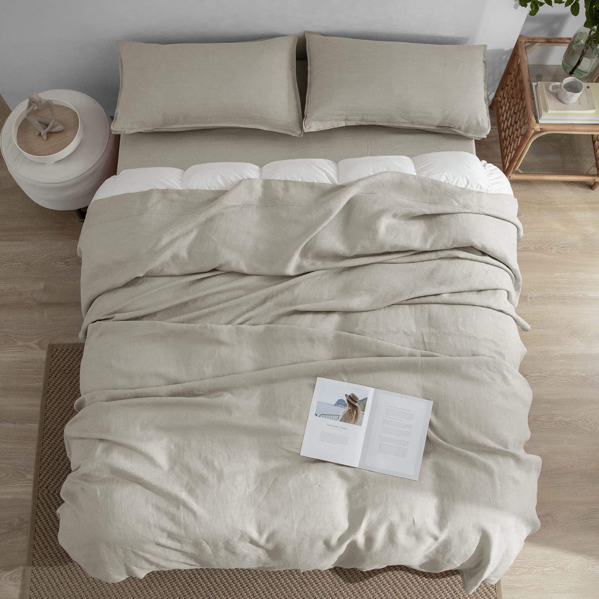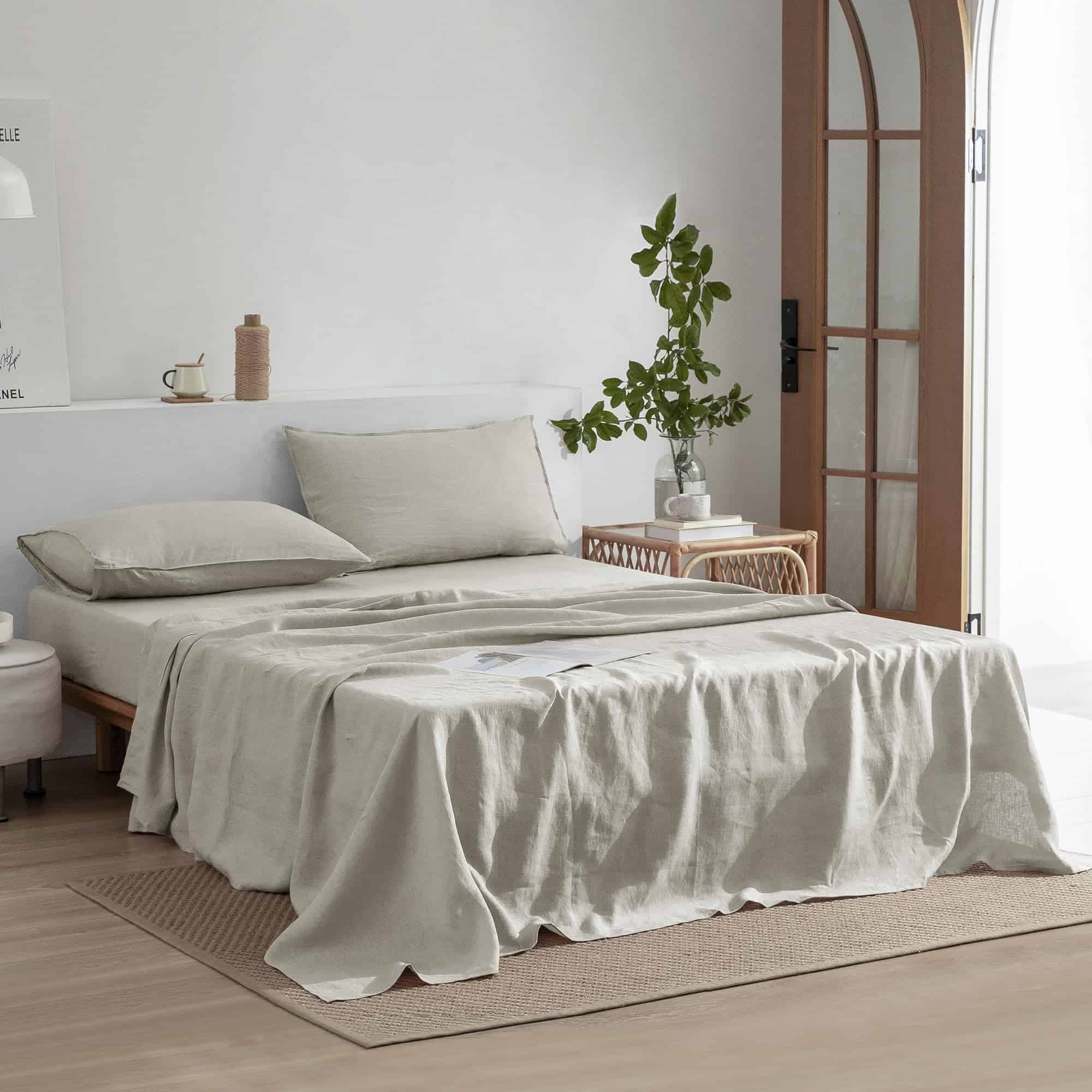 Para mantener la lino suave y en perfectas condiciones, sigue las instrucciones de cuidado recomendadas. Lavado a máquina en frío con un ciclo suave, secado a baja temperatura o planchado si es necesario. Evita el uso de productos químicos agresivos que puedan dañar el lino y disfruta de la suavidad y frescura de este juego de sábanas durante mucho tiempo.