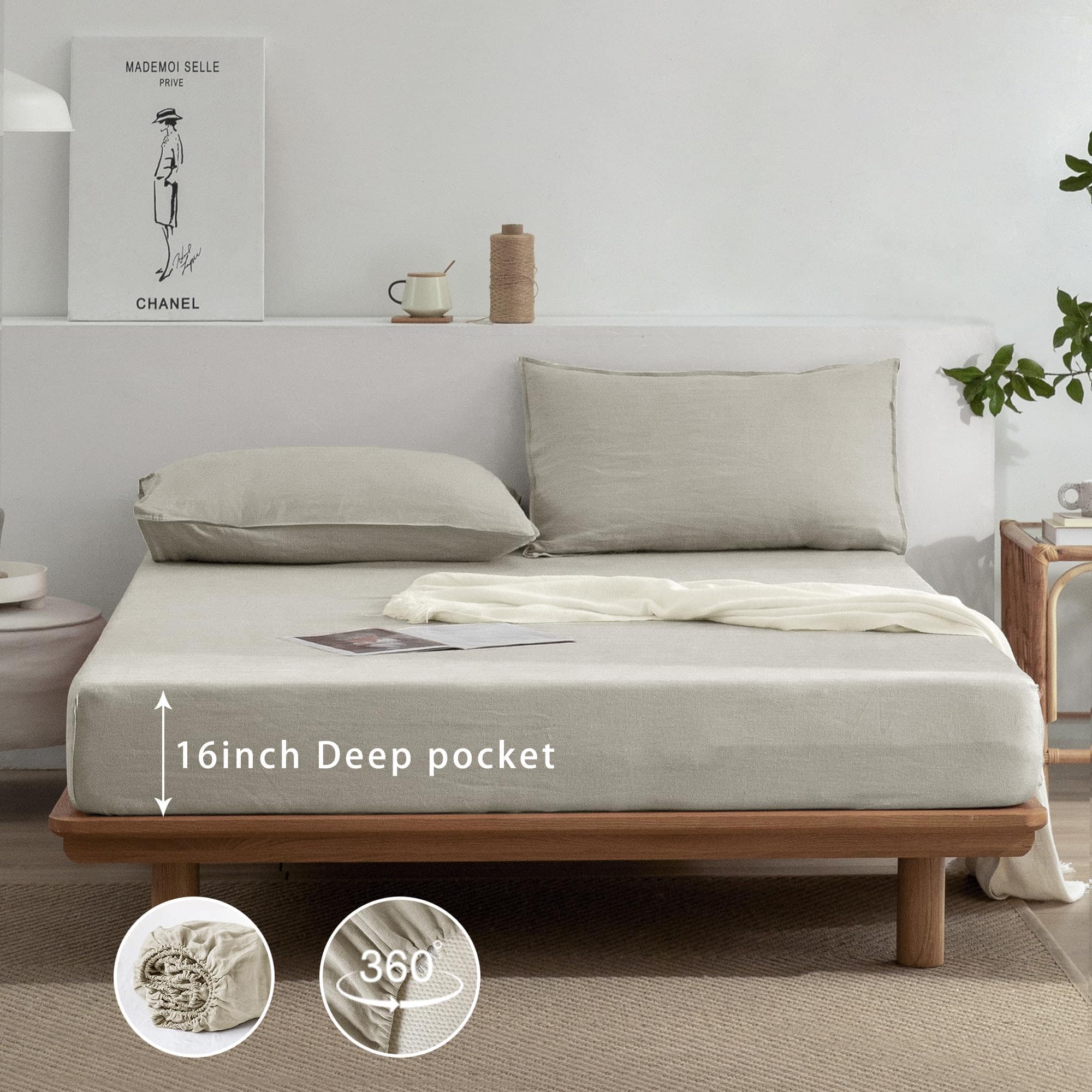 La sábana ajustable de bolsillo profundo puede adaptarse a colchones de hasta 16 pulgadas de profundidad, brindando un ajuste perfecto y evitando que la sábana se deslice o haga bultos. Los bordes con doble costura añaden durabilidad al juego de sábanas y previenen el desgaste con el uso regular.