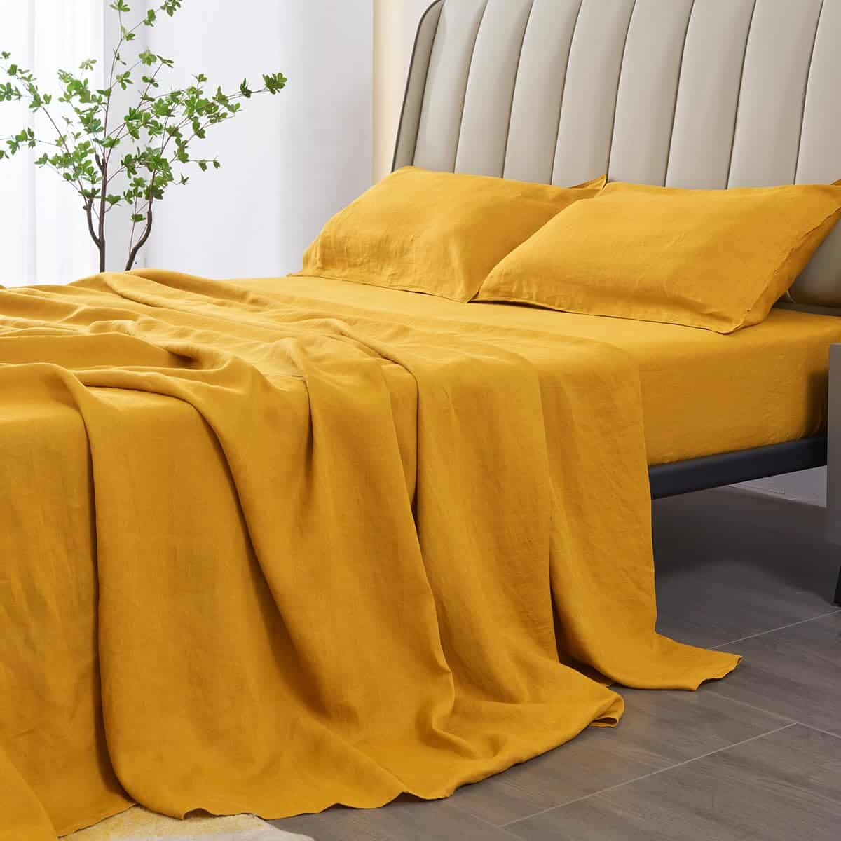 Juego de sábanas de lino francés orgánico S -Amarillo
