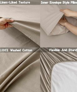 «El algodón puro brinda más comodidad: este juego de sábanas de lino gris está hecho de 100% algodón lavado, en comparación con otras sábanas planas y ajustables hechas de fibra de poliéster, es más transpirable y más amigable para la piel, no es fácil generar electricidad estática. Un sábana ajustable de bolsillo profundo está incluida en el set y se adapta a colchones de hasta 17 pulgadas de grosor, lo que es ideal para toppers de espuma con memoria, grandes almohadillas de colchón, colchones con pillow top y colchones de espuma con memoria, etc. Fácil mantenimiento: este juego de sábanas de tamaño Queen es bastante fácil de cuidar, simplemente lávelo a máquina en agua fría en el ciclo suave y seque a baja temperatura o séquelo al aire natural, no necesitará demasiados pasos de lavado y cuidado complicados. Una opción de estilo de vida de lujo ligero: se seleccionó una paleta de colores clásica para las sábanas planas, sábanas ajustables y fundas de almohada, lo que le brinda a la decoración del dormitorio un aspecto elegante y lujoso para que no parezca tan aburrido. ¿Qué obtendrás: paquete total de 6 piezas: sábana plana de 102″ x 90″ x 1, sábana ajustable de 80″ x 77″ x 1 (se ajusta a colchones de hasta 17 pulgadas) y fundas de almohada de 36″ x 20″ x 4. Consejo de compra previa: EL EDREDÓN Y LA ALMOHADA NO ESTÁN INCLUIDOS»