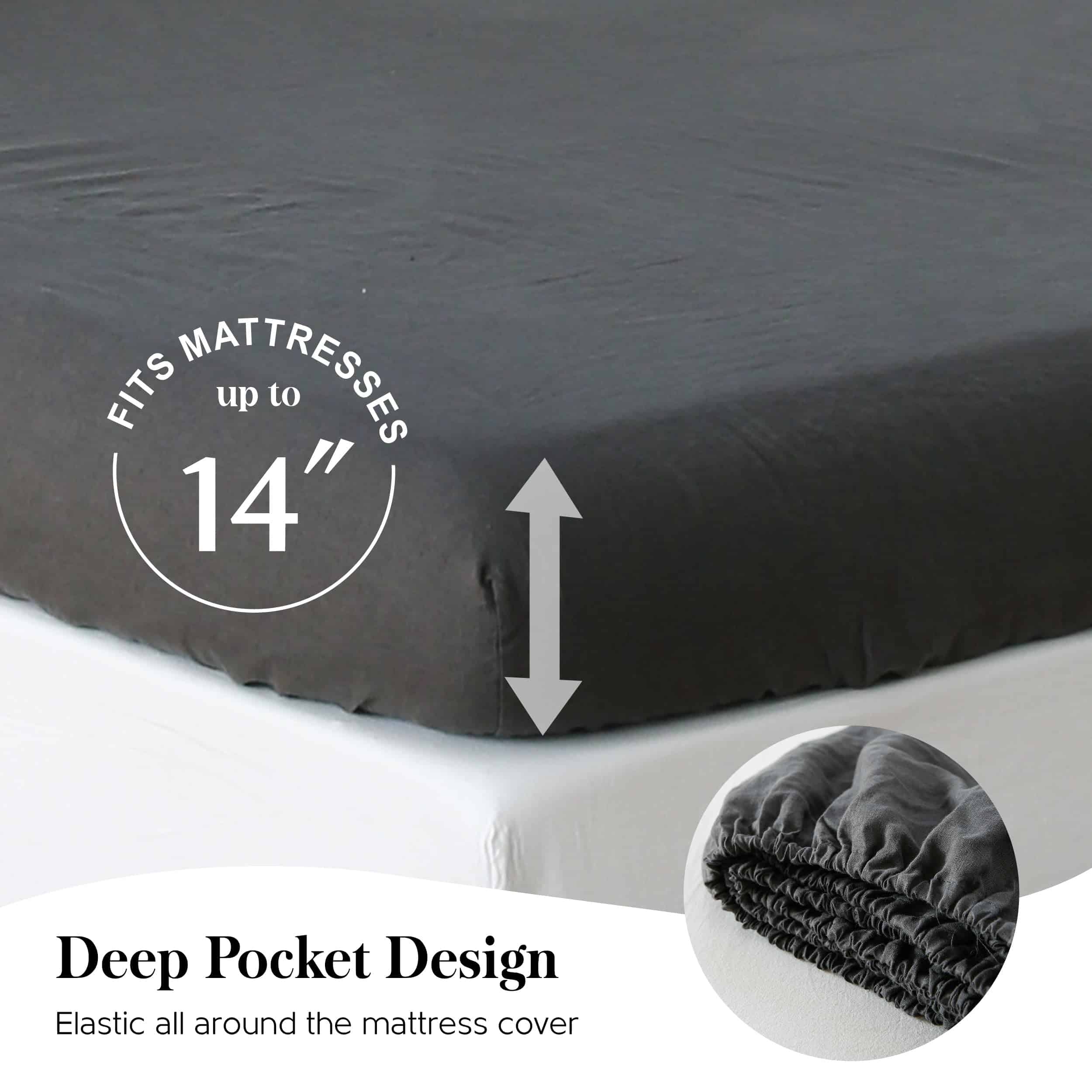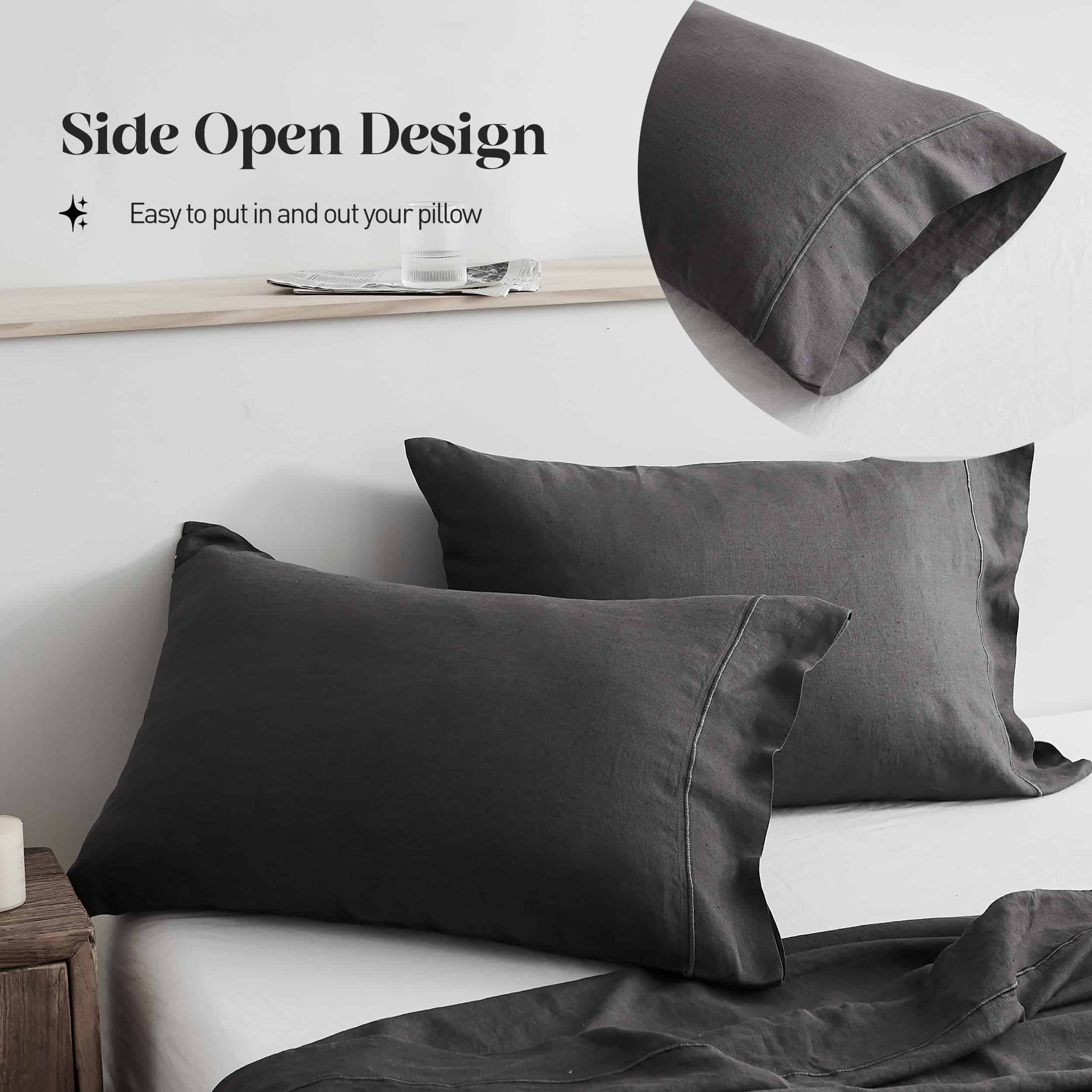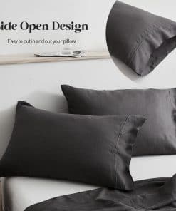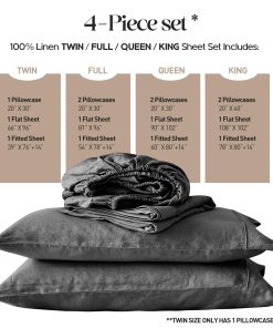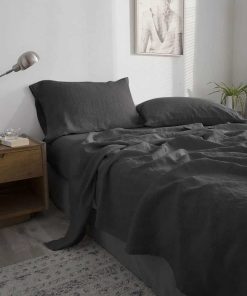 Juego de Sábanas de Lino Lavado al 100% -Gris Oscuro