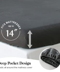 2. Lo Que Puedes Obtener-Llegarán atadas en un paquete con una cinta de algodón, como un pequeño regalo. El set de sábanas de 4 piezas incluye: 1 Sábana Plana, 1 Sábana Ajustable y 2 Fundas de Almohada. Tamaño: La sábana plana de tamaño Queen mide 90″ x 102″, la sábana ajustable mide 60″ x 80″ x 14″, la funda de almohada mide 20″ x 30″. Nuestra sábana ajustable tiene 14 pulgadas de profundidad con elástico alrededor de toda la sábana, se ajusta bien a tu colchón. Si necesitas sábana adicional por favor busca el ASIN B07V8RLQGN; sábana ajustable adicional: B07V8RBFK4; fundas de almohada adicionales: B075M8QK55.