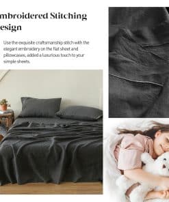3. Ventajas del Lino-El lino es uno de los mejores tejidos para la salud. El lino te mantiene cálido en noches frías y fresco en noches cálidas, una «pieza de inversión» para tu dormitorio. Es suave como el algodón egipcio y de peso medio. El lino tiene una agradable regulación de temperatura y transpirabilidad para ayudarte a quedarte dormido más rápido y dormir más profundamente. El material único es especialmente adecuado para regiones de climas cálidos. La tela será más suave después de lavados repetidos, y la durabilidad no se perderá.