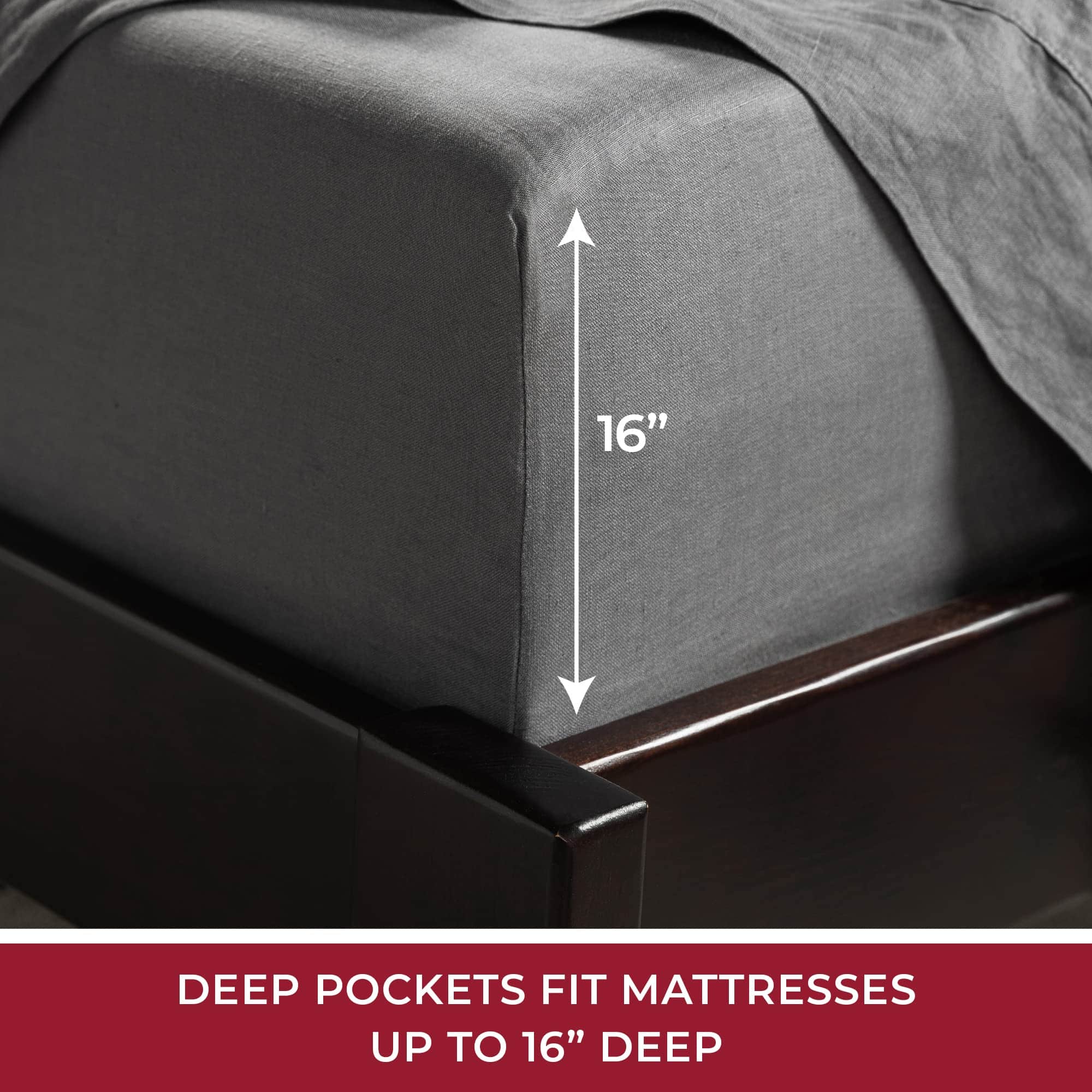 4. Fácil cuidado para uso prolongado – El juego de sábanas de lino puro de Mellanni está cuidadosamente diseñado para resistir la prueba del tiempo. El lino de lino es naturalmente resistente a la suciedad, biodegradable, de secado rápido y siempre huele fresco. Lavar en frío y secar al aire solo. Incluye sábana ajustable de 80″ x 78″, sábana plana de 102″ x 108″, y un par de fundas de almohada de 20″ x 40″.