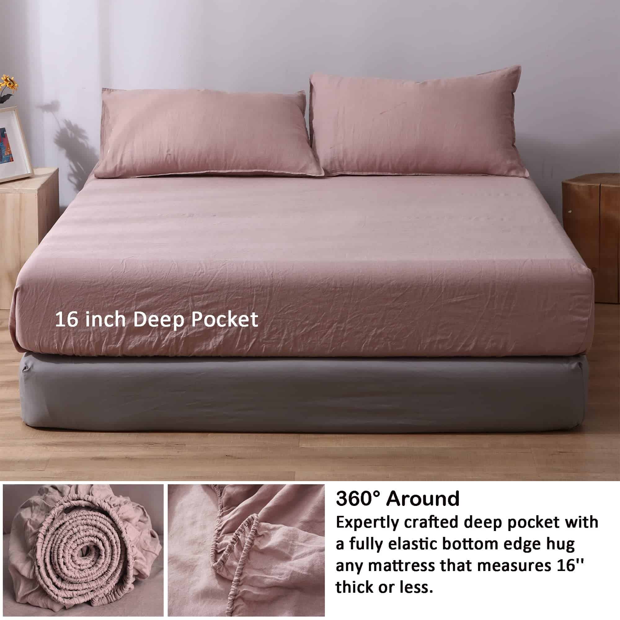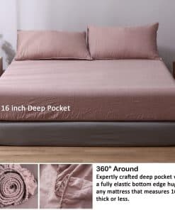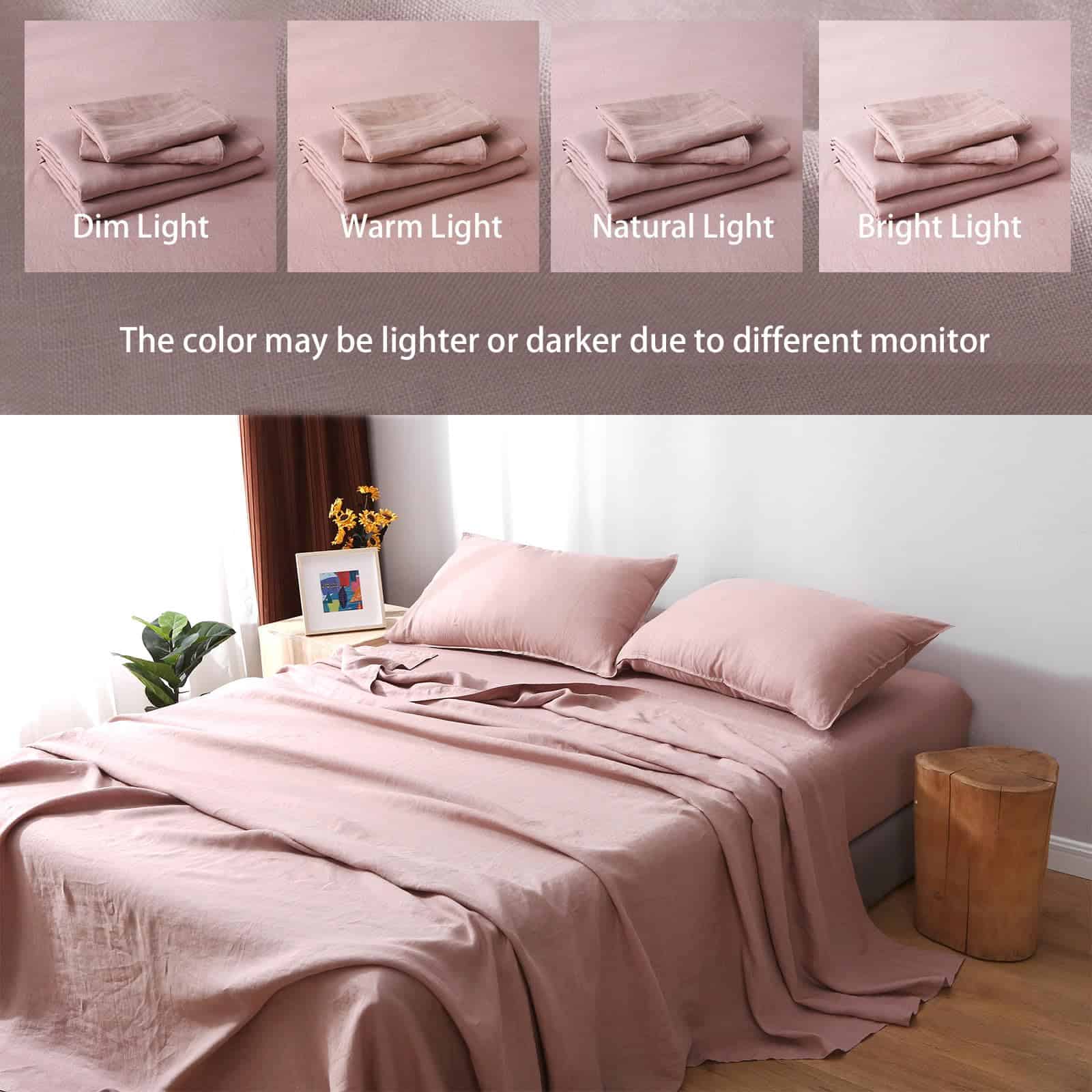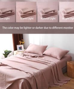 El juego de sábanas de lino está hecho con el mejor lino natural de Francia que es más fuerte y duradero que otras telas. Es ideal para todas las estaciones, ya que absorbe la humedad y regula la temperatura corporal. El juego de sábanas King incluye 1 sábana plana (108″x 102″), 1 sábana ajustable con bolsillo profundo de 16 pulgadas (78″x 80″+ 16″) y 2 fundas de almohada (40»x 20»). Se recomienda lavar a máquina y secar suavemente para mantener la suavidad y la durabilidad del lino. Viene empacado en una bolsa de lino reutilizable que lo convierte en un regalo ideal para cualquier ocasión.