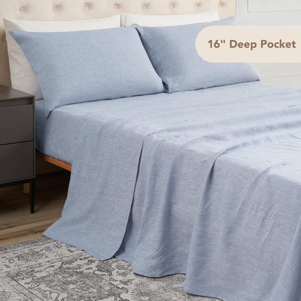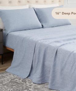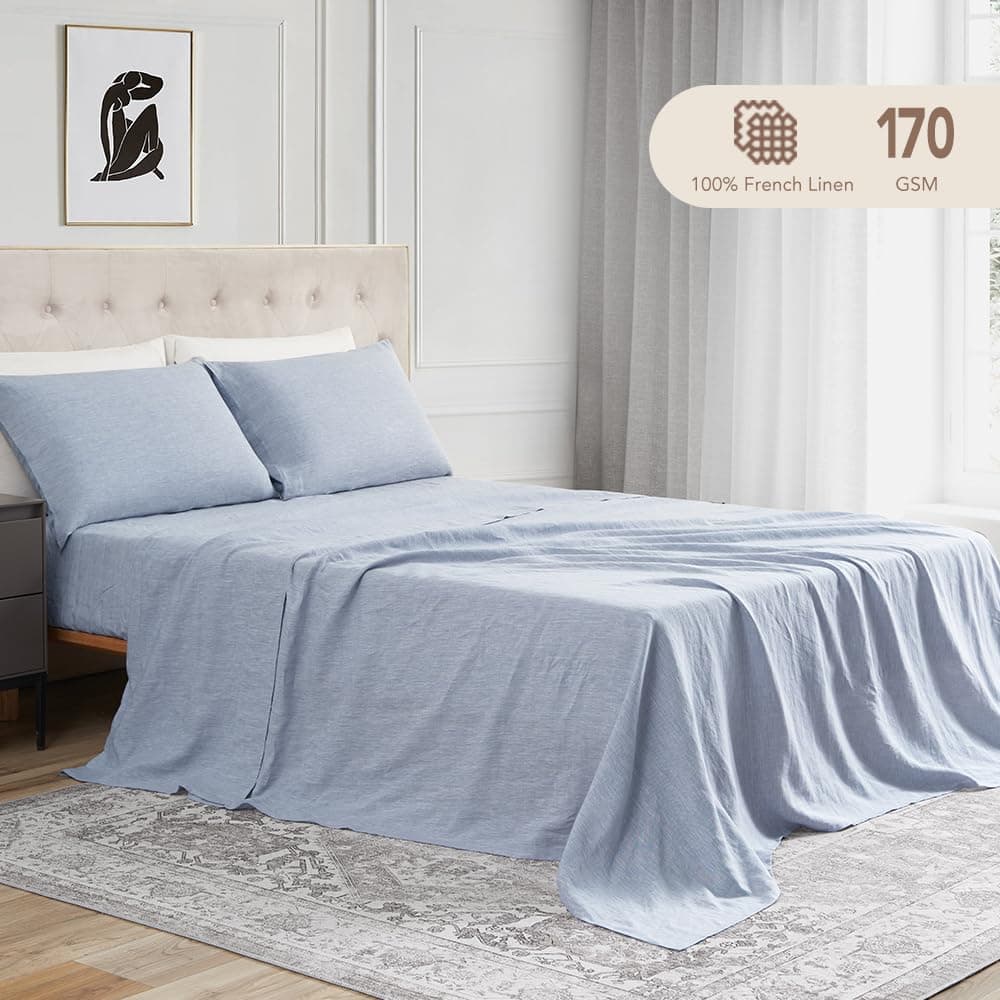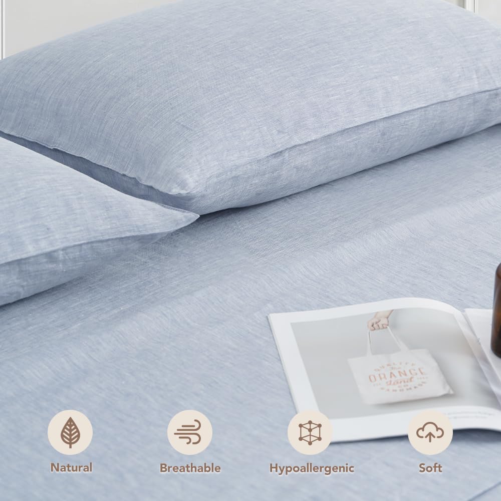 Juego de Sábanas de Lino Puro DAPU, 100% -Cielo de Verano
