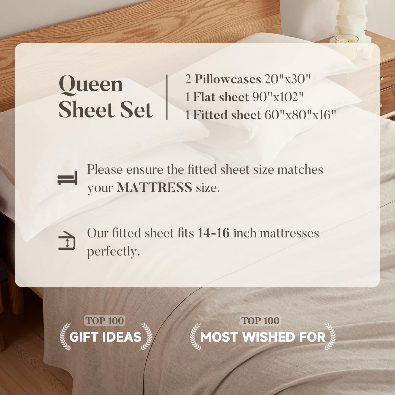 Juego de sábanas de lino puro DAPU, 100% -Lino Natural