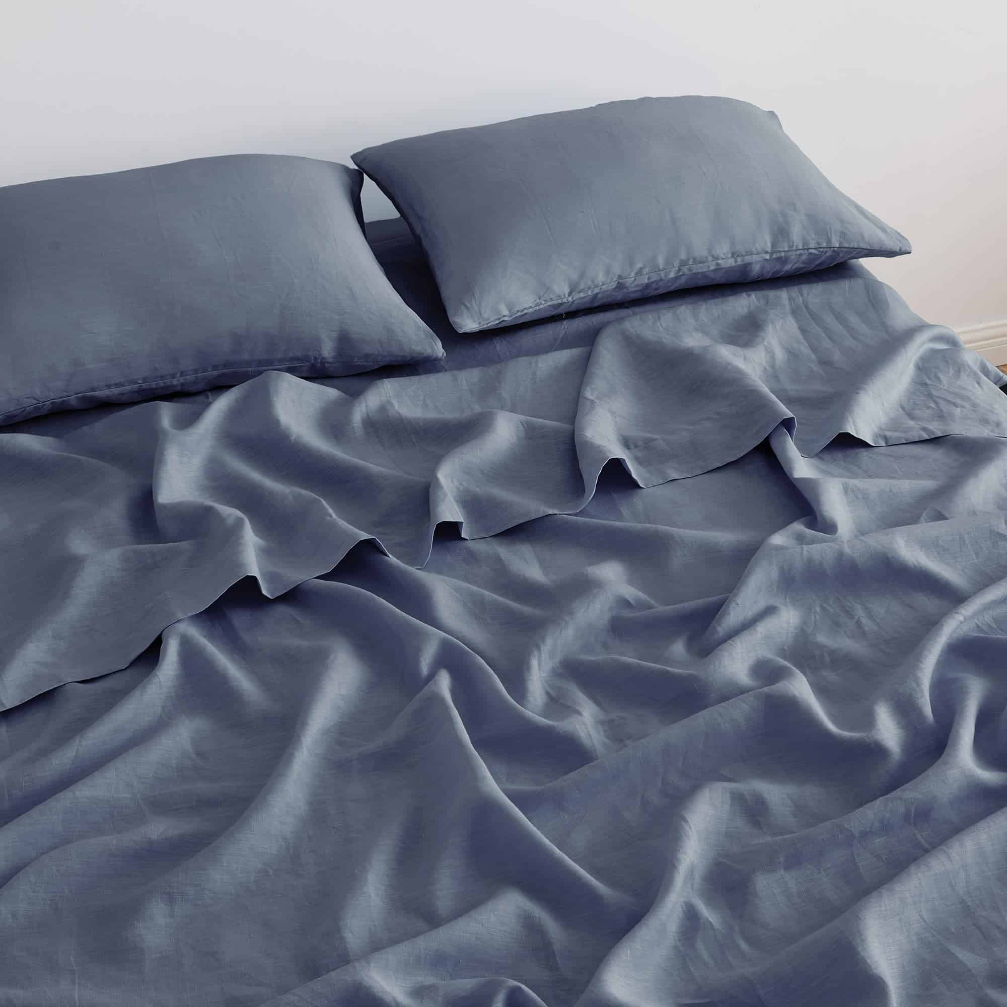 Sábanas naturalmente relajadas para tu estética vivida. Estas sábanas están certificadas 100% lino europeo y elaboradas de manera ética en Pakistán; están hechas para sentirse bien. El lino es naturalmente que absorbe la humedad y regula la temperatura, diseñado para ayudarte a mantenerte fresco en verano y cálido en invierno, estas sábanas son ideales para todas las estaciones. Con bolsillos de 16″, una sábana ajustada extra resistente y fundas de almohada con abertura lateral y doblez oculta, este set hace que hacer la cama sea fácil. Estas sábanas están certificadas por OEKO-TEX Standard 100 y BSCI (Initiative Business Social Compliance).