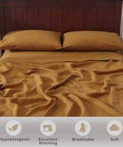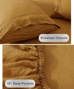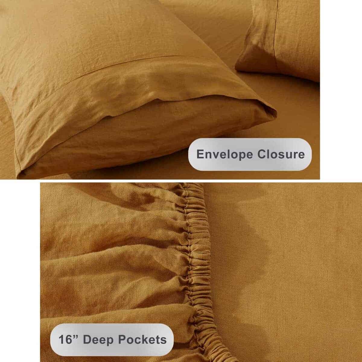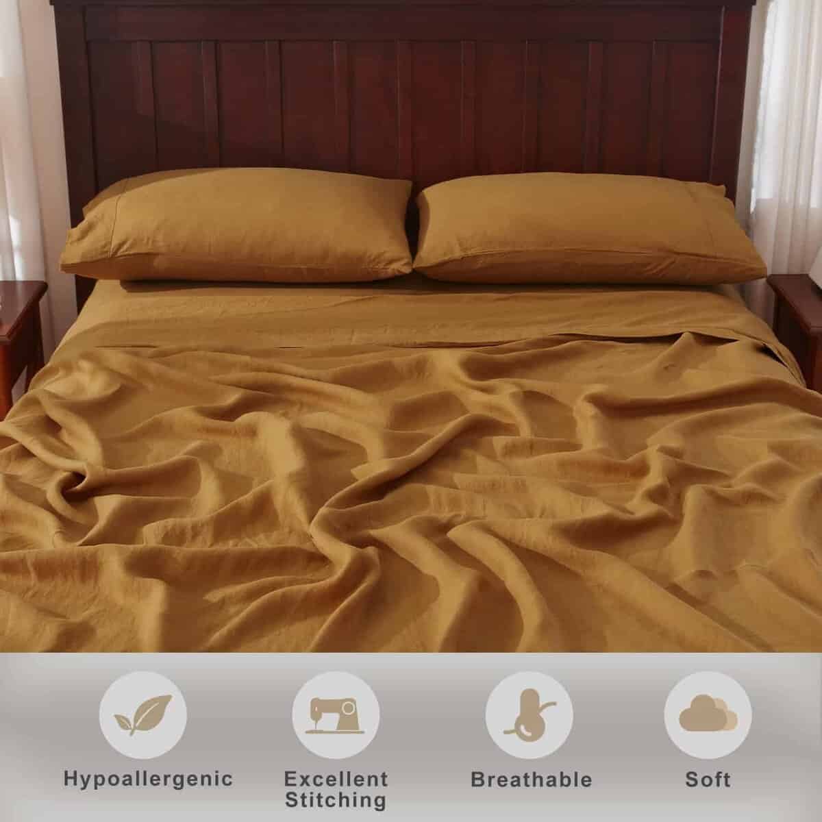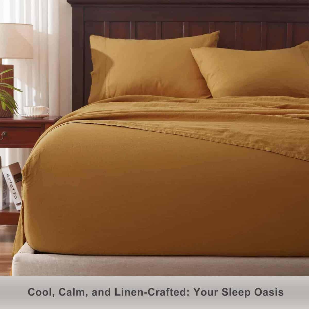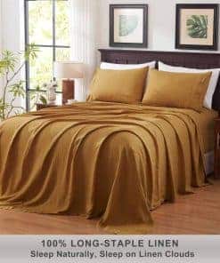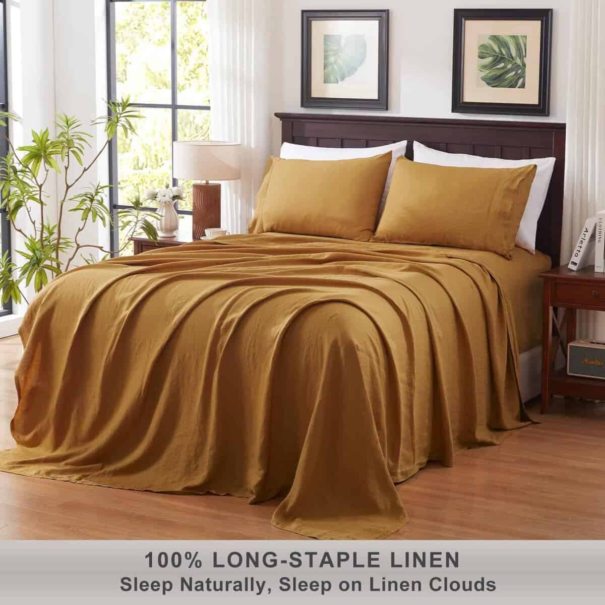 Juego de sábanas de lino puro TOSMO, 100% -Amarillo Butternu