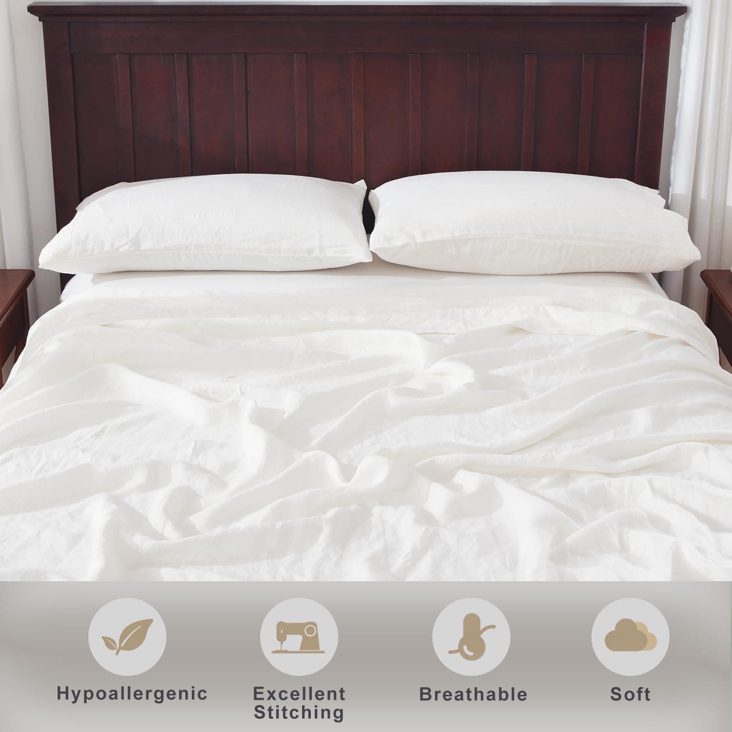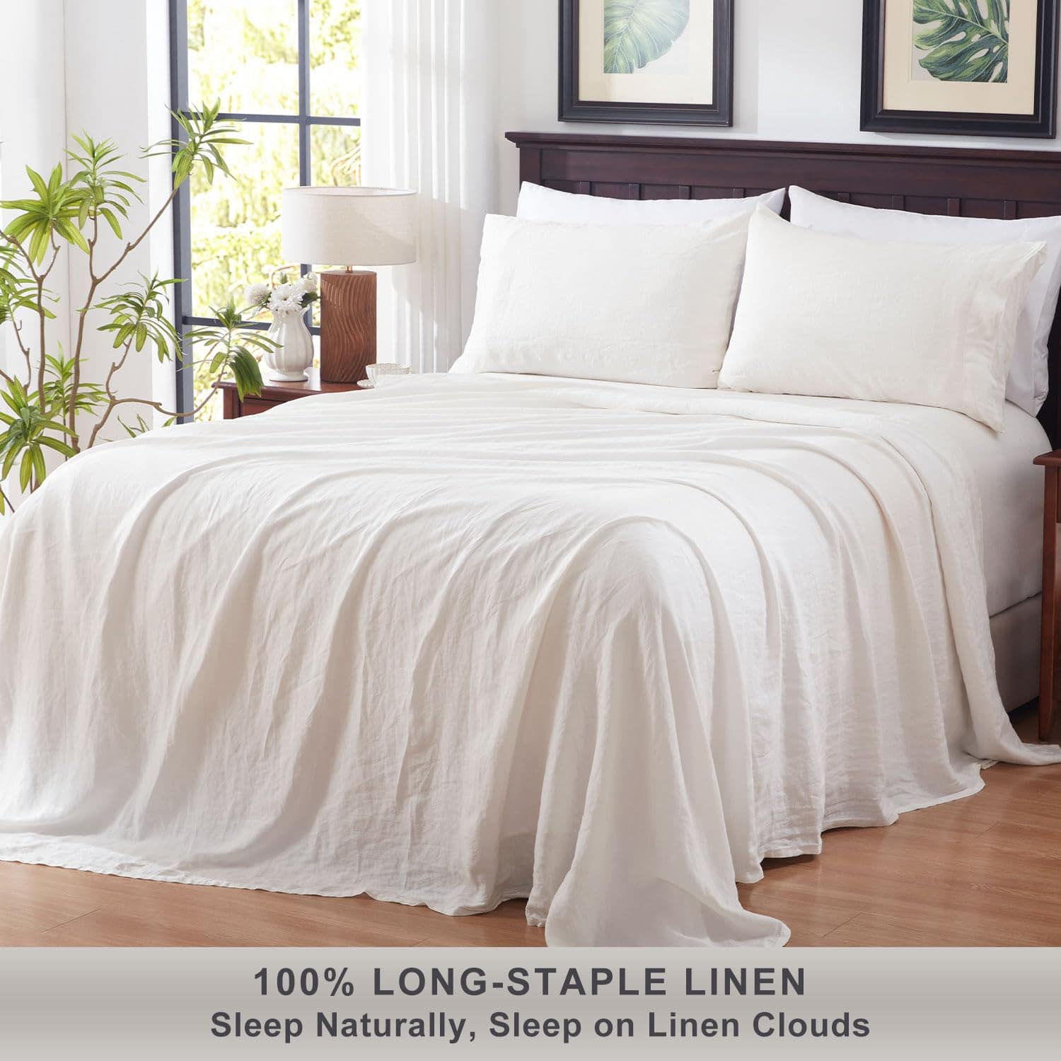 1. 100% Lino Natural: Hecho exclusivamente con lino francés de alta calidad de cultivo largo, el juego de sábanas de lino ha sido certificado por OEKO-TEX Standard 100 y certificación EUROPEAN FLAX. Sábanas orgánicas hipoalergénicas cultivadas y procesadas de forma natural sin químicos ni aditivos, cosechadas de manera respetuosa con el medio ambiente.