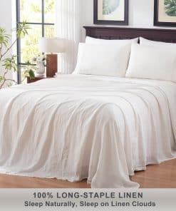 2. Siéntete Cómodo Todo el Año: El juego de sábanas de lino TOSMO está hecho de lino francés de alta calidad que tiene una agradable característica de control de temperatura que puede absorber el 20% de su peso en humedad antes de comenzar a sentirse húmedo, lo que significa que estarás fresco en verano y acogedor en invierno. Y te ayuda a conciliar el sueño más rápido y dormir de manera más profunda, asegurando un sueño acogedor durante todo el año. Las sábanas perfectas para personas que tienden a sentir calor mientras duermen.