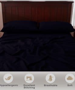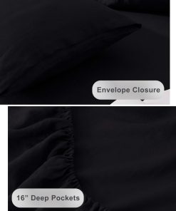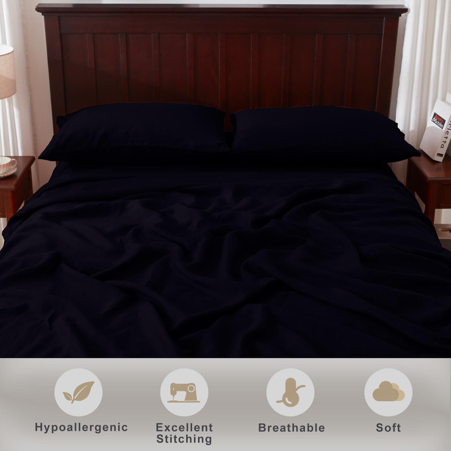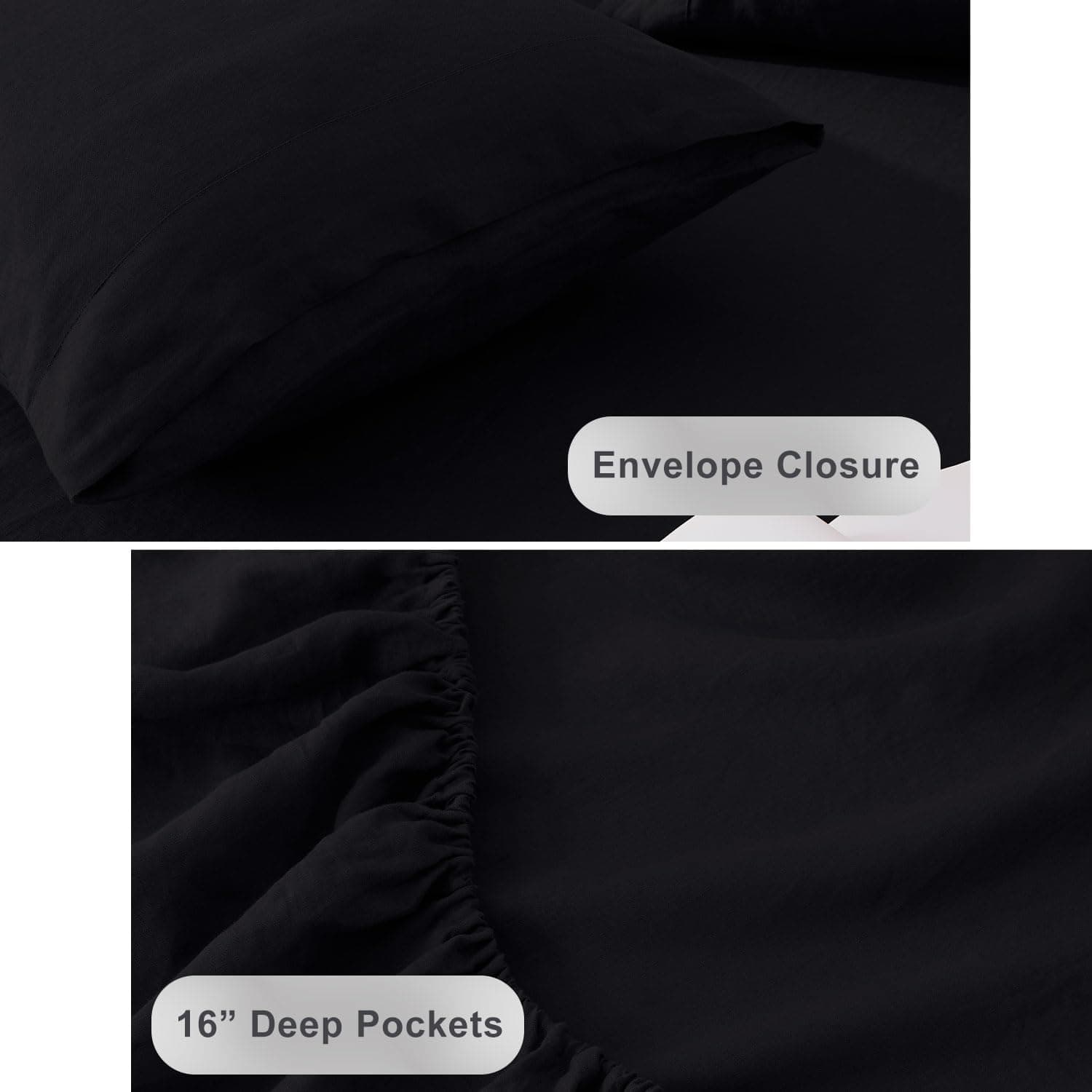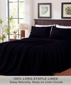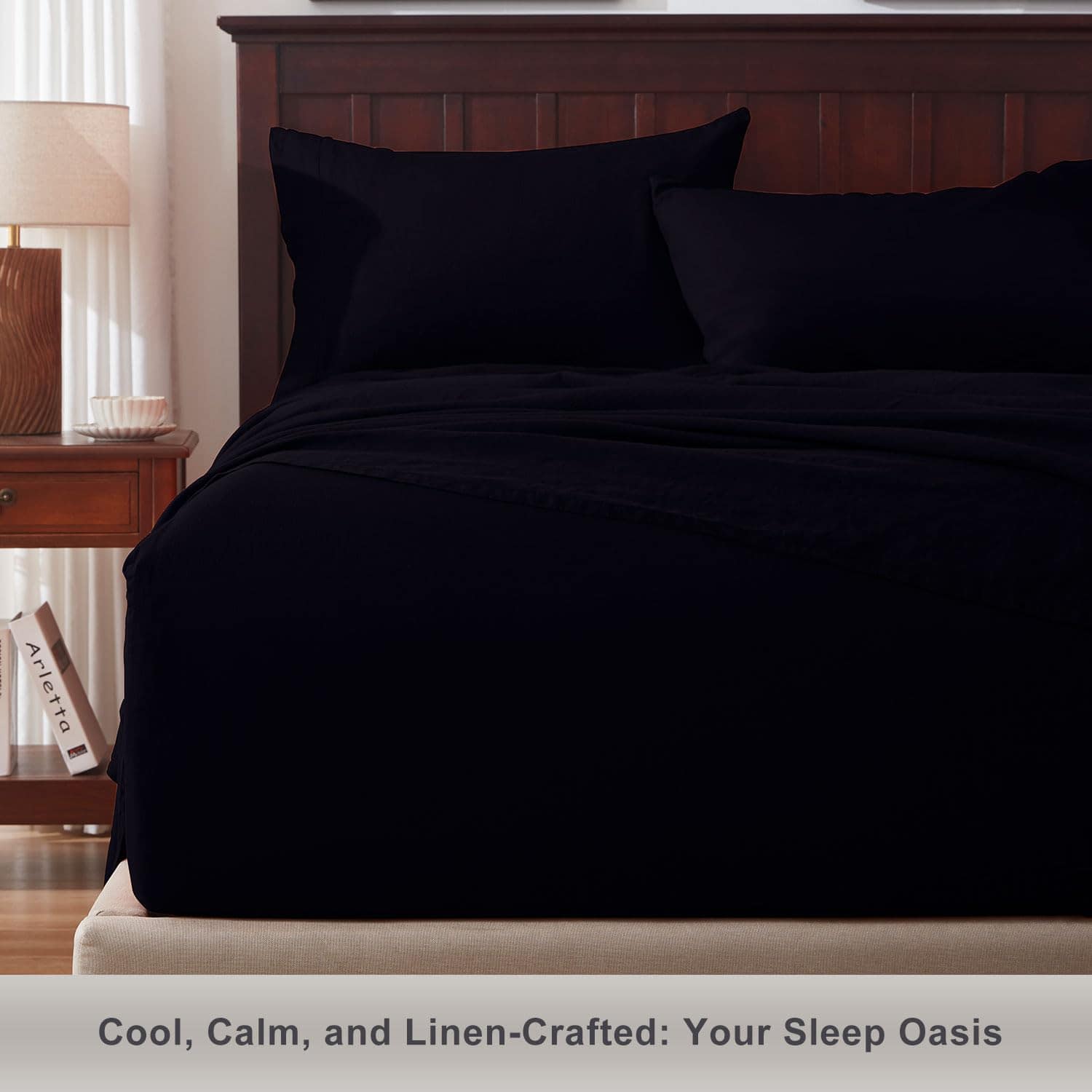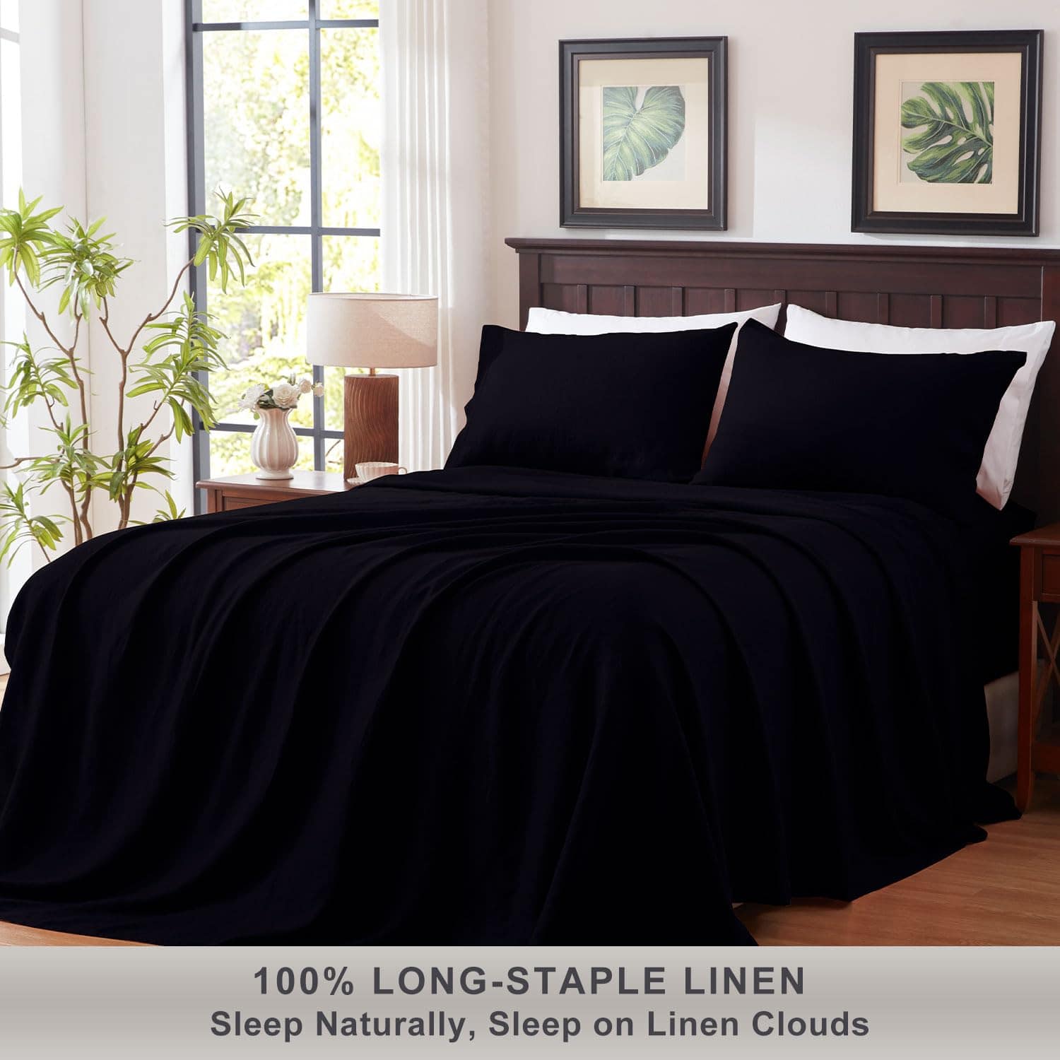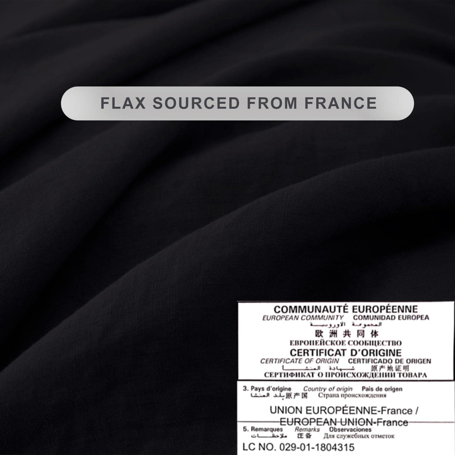 Juego de sábanas de lino puro TOSMO, 100% -Negro