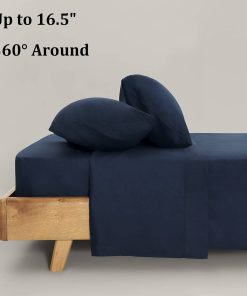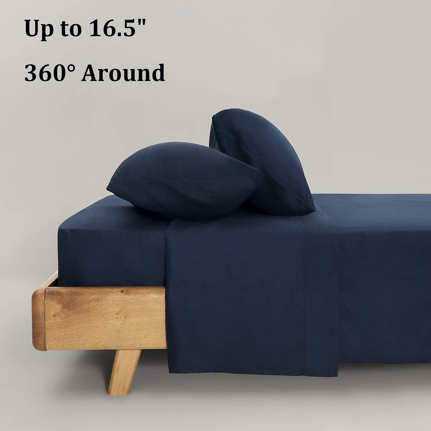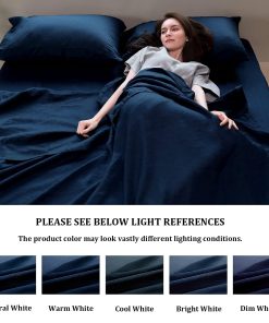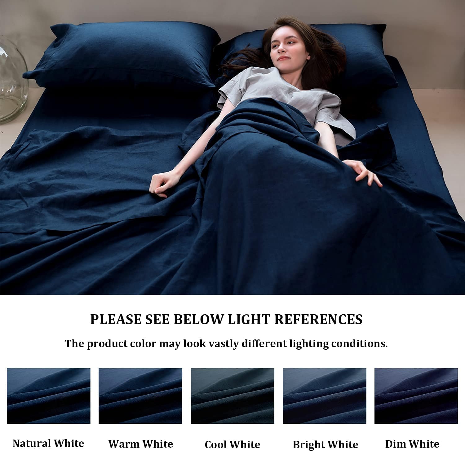 Juego de sábanas de lino puro TOSMO, juego de -Navy